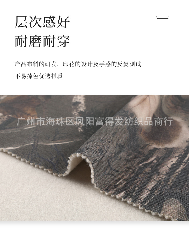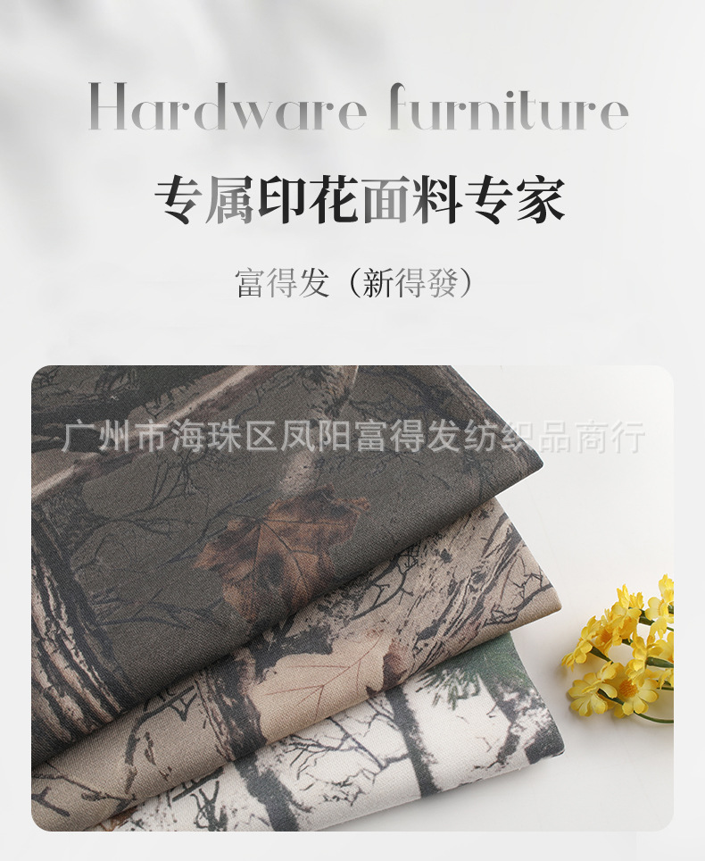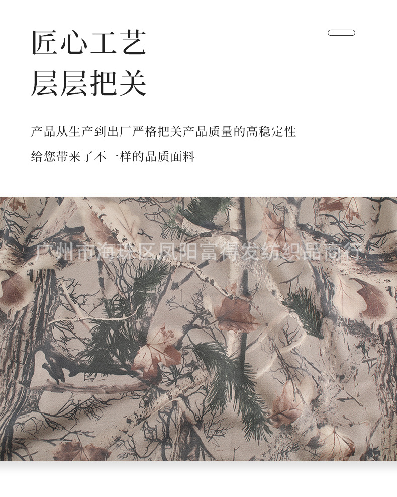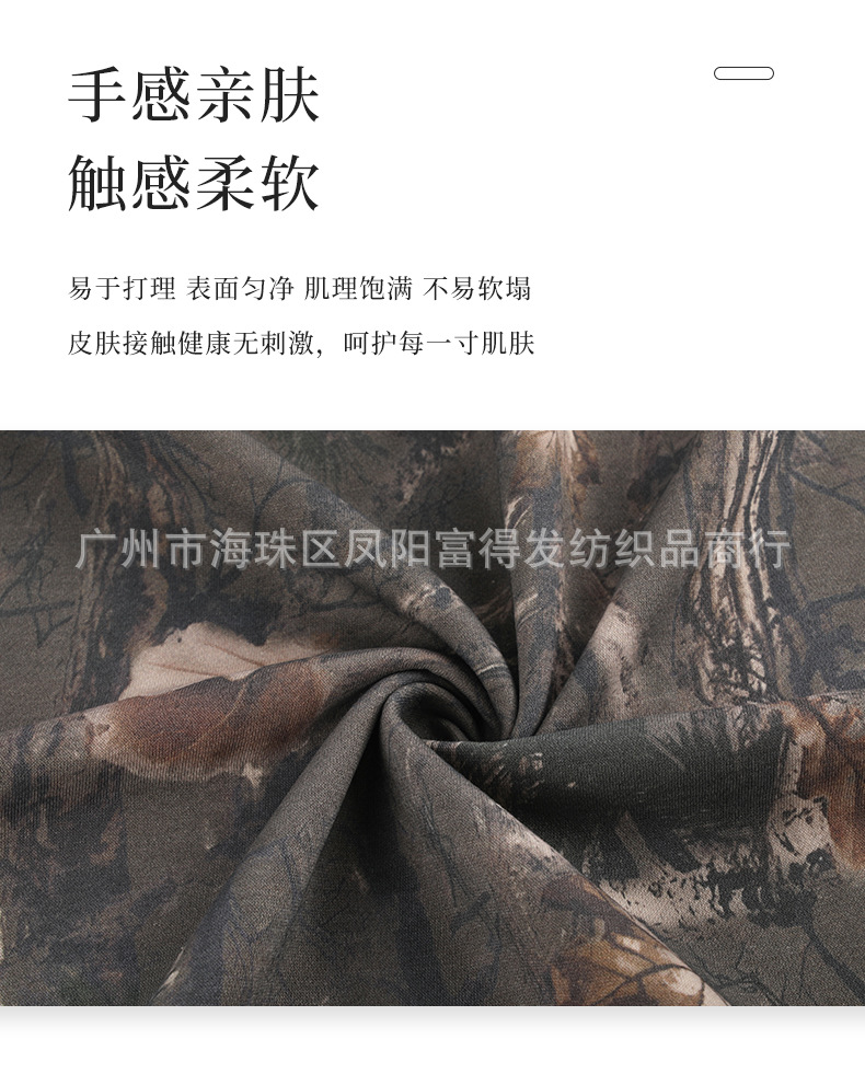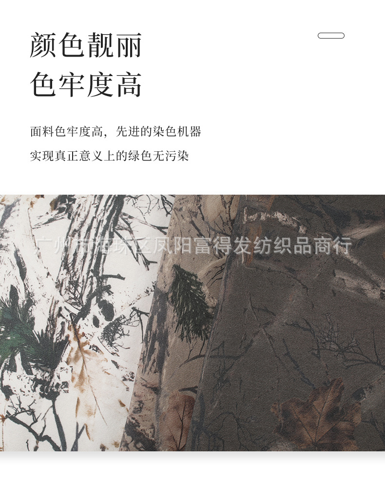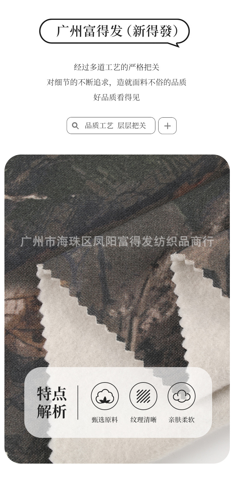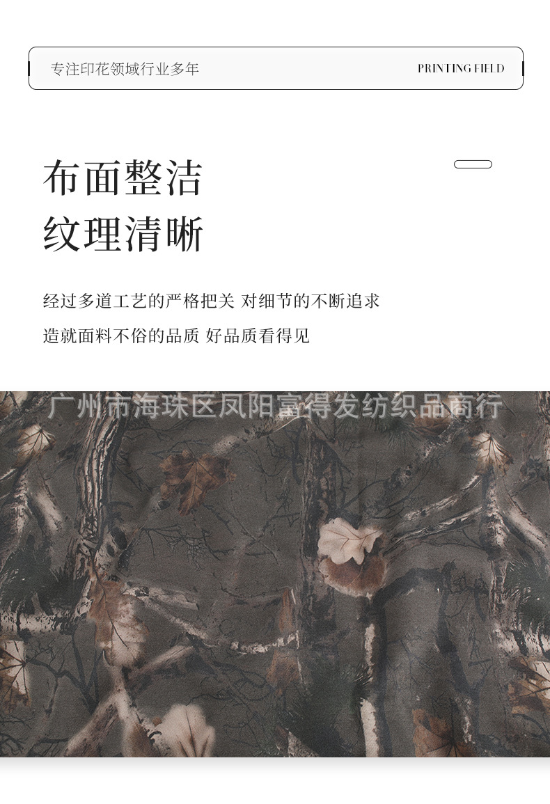 270克树叶迷彩印花面料 枯树印花布现货森林枯叶卫衣服装鞋帽面料