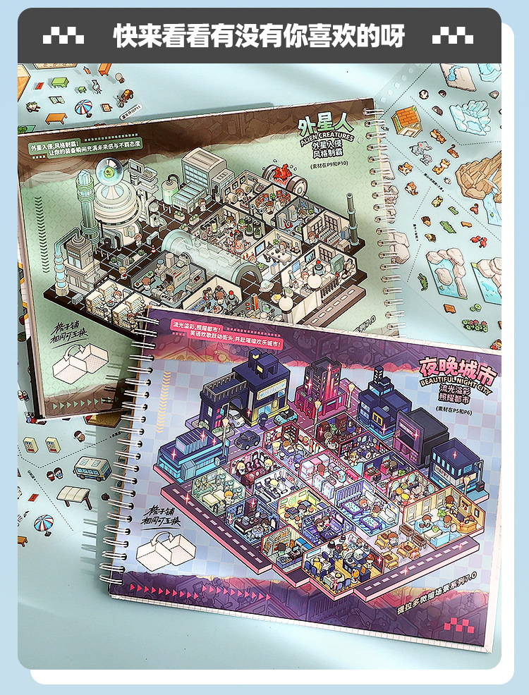 城市造景贴纸合集本超大尺寸3D立体微缩场景贴纸儿童手账拼贴素材