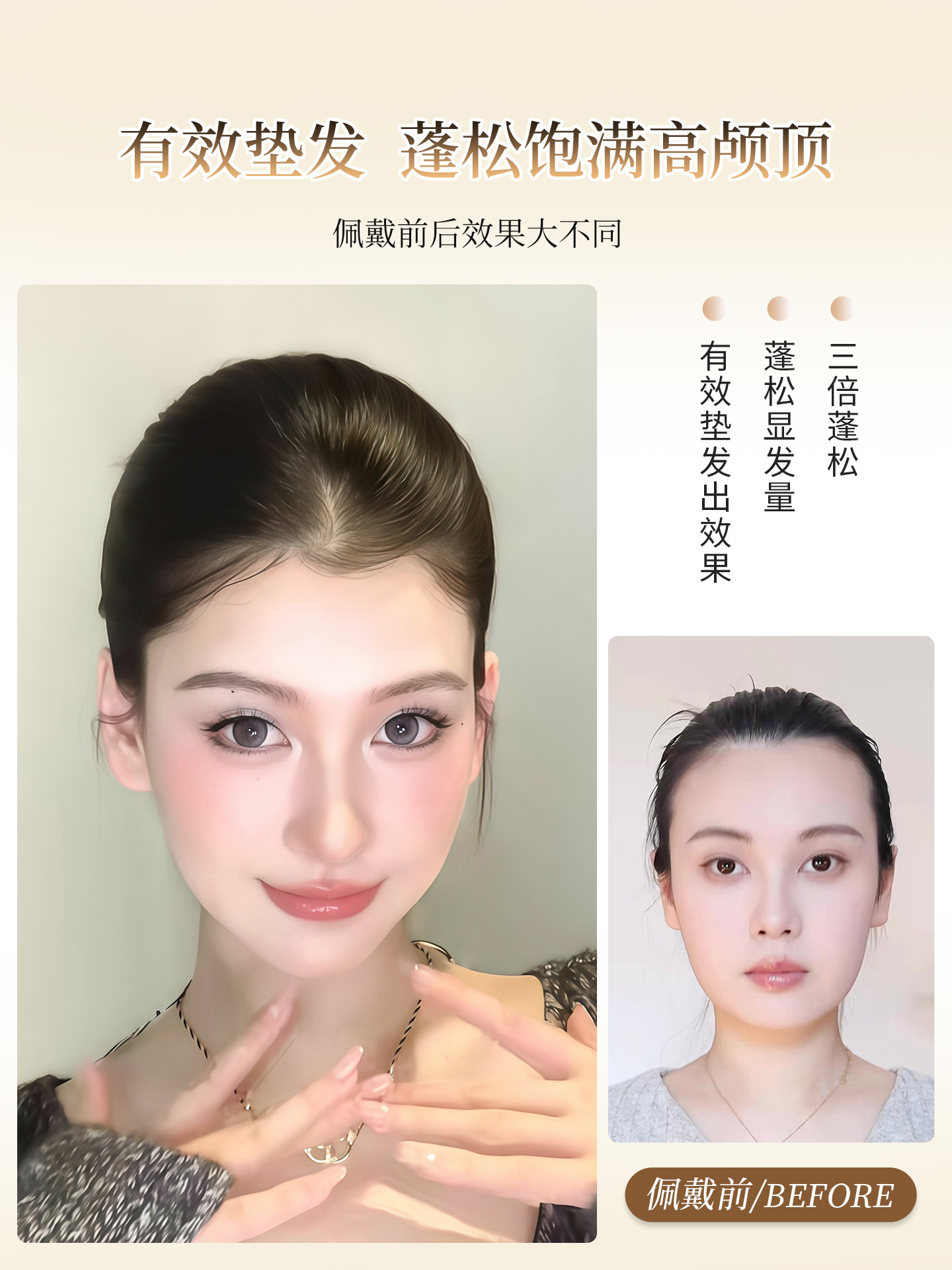 玉米须垫发片亚克力发饰垫高头顶增发量无痕隐形发丝蓬松垫发器