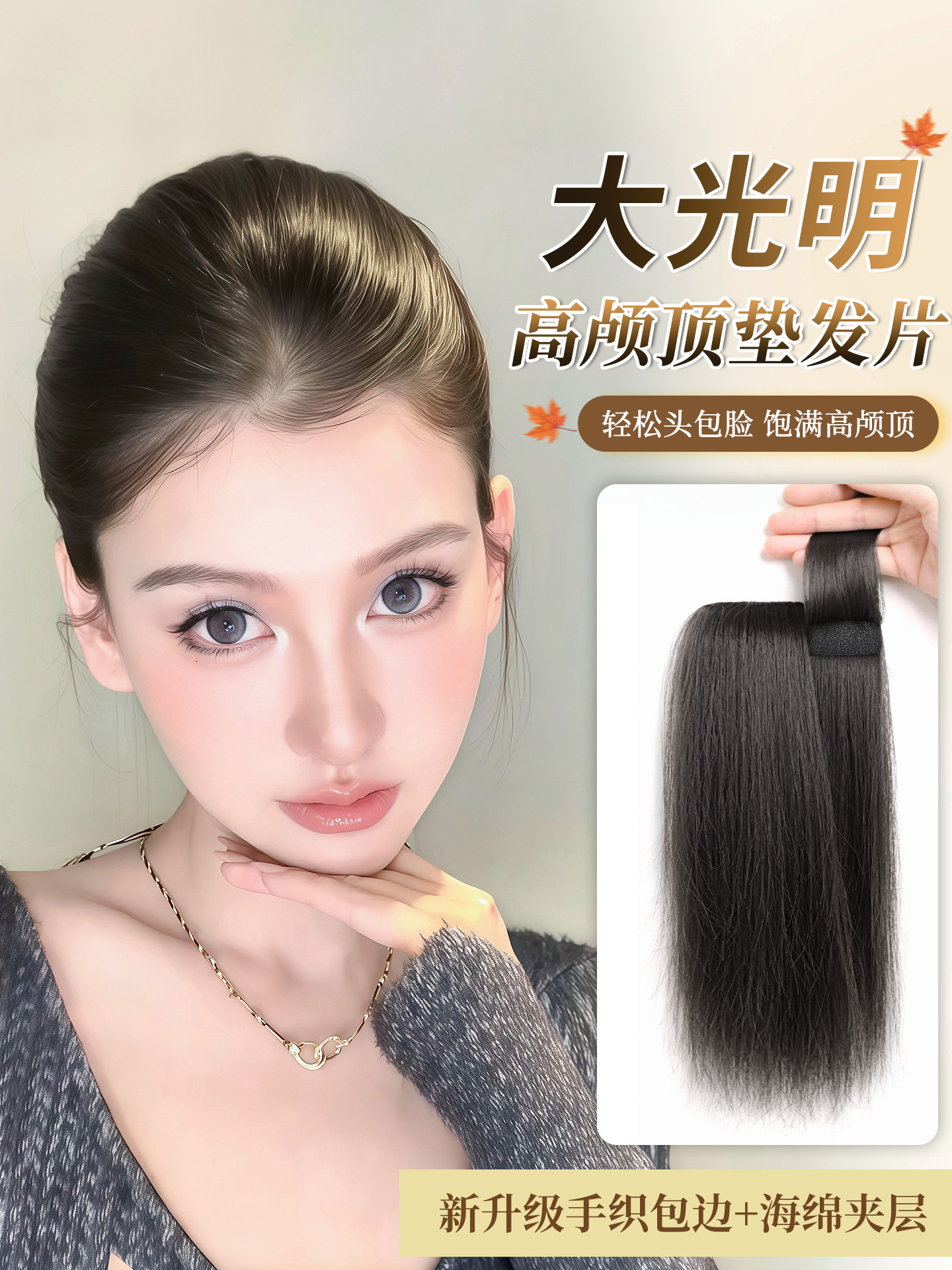 新升级无痕包边玉米须垫发片高颅顶大光明增补发量蓬松头顶假发片