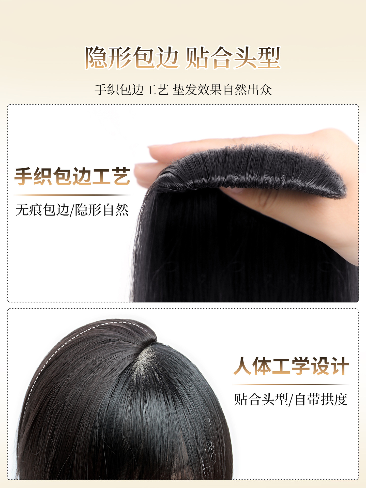 高颅顶假发片女增发量垫发根海绵垫发片手织包边隐形无痕头顶补发