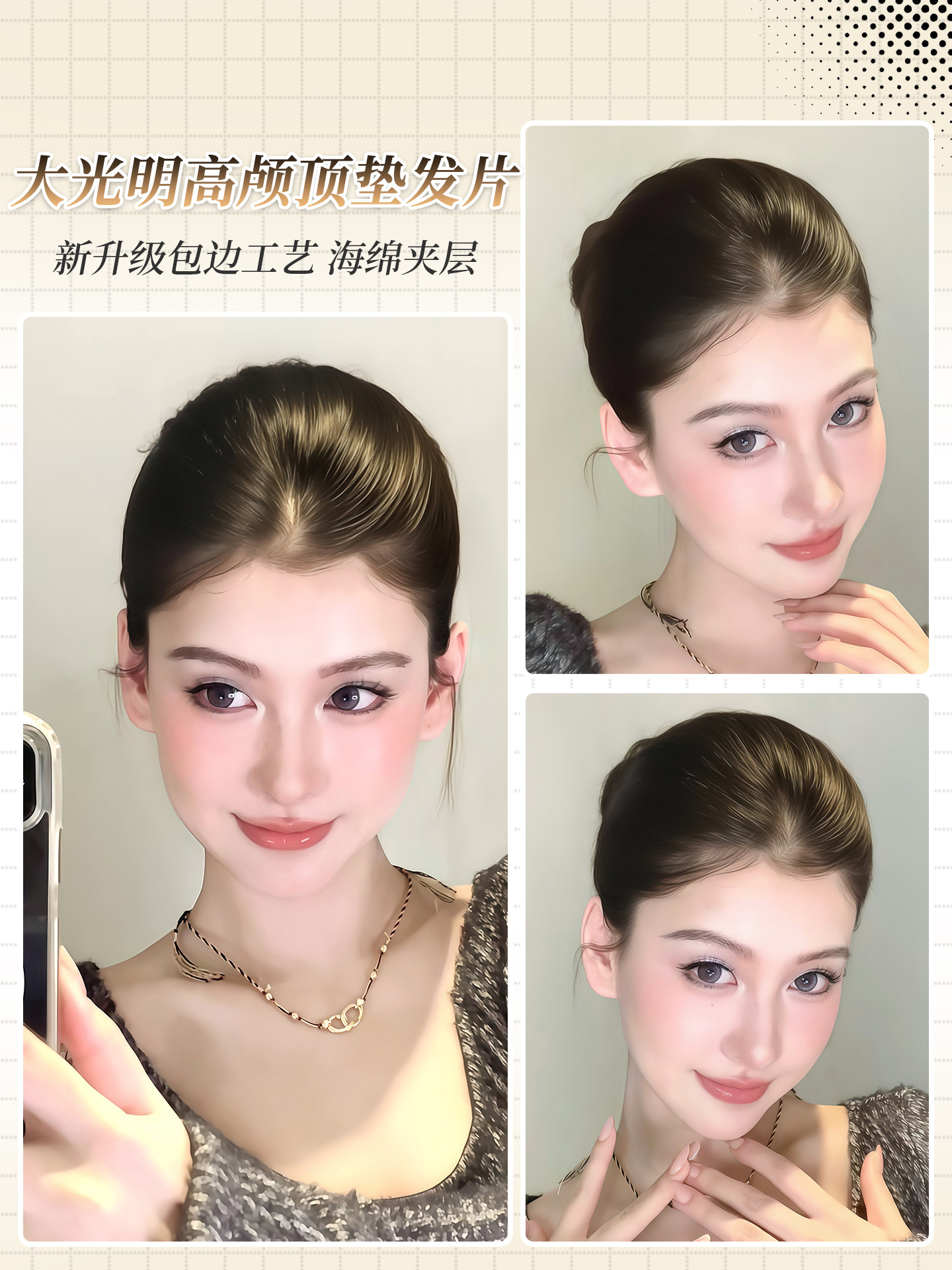 高颅顶假发片女增发量蓬松包边海绵大光明垫发片无痕头顶补发神器