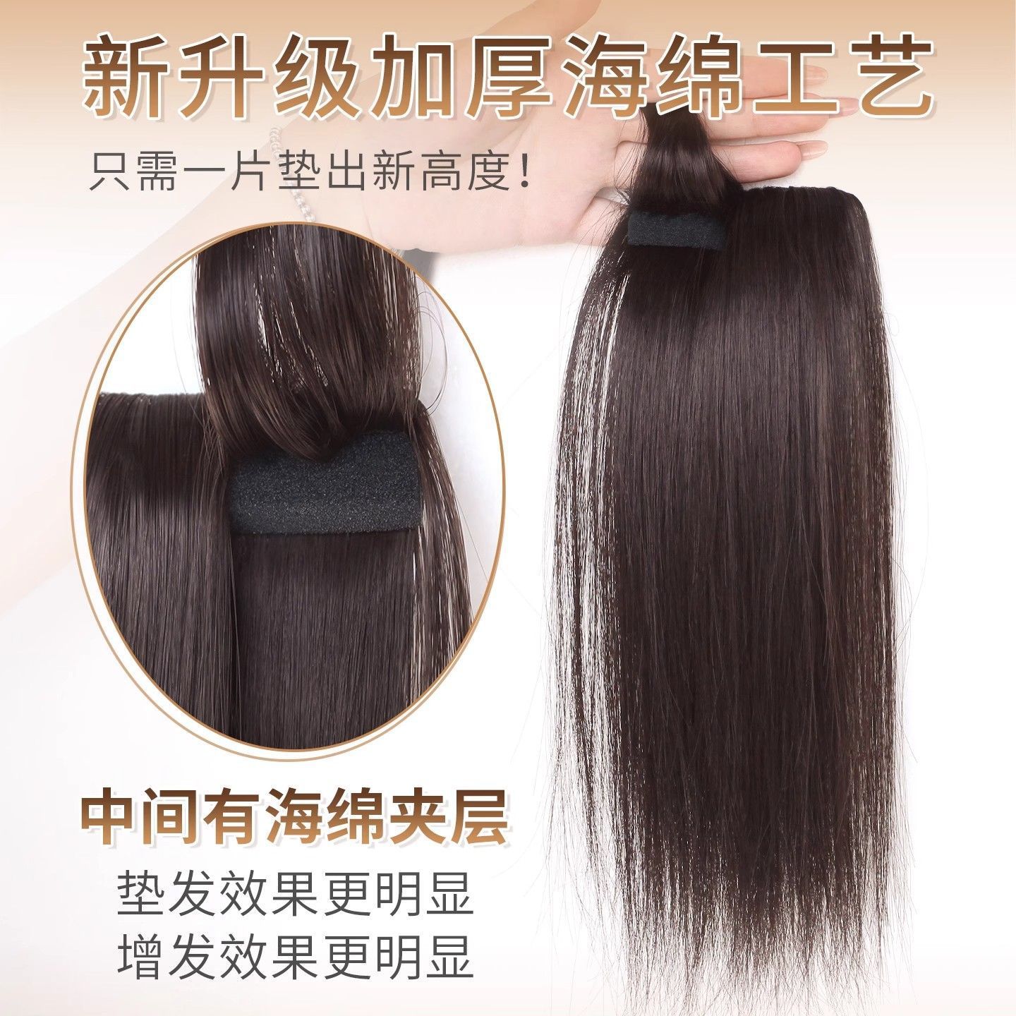 高颅顶假发片女增发量垫发根海绵垫发片两侧增厚隐形无痕头顶补发