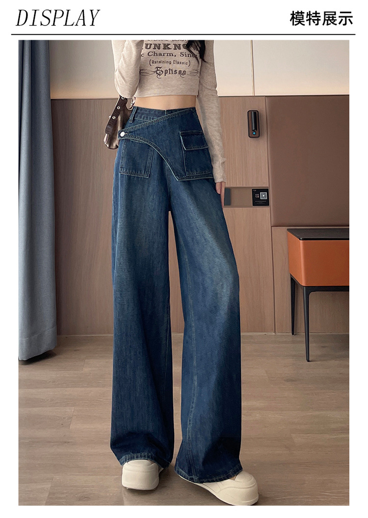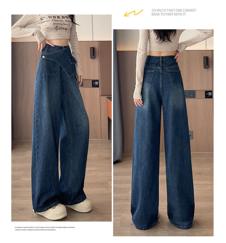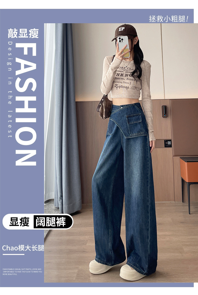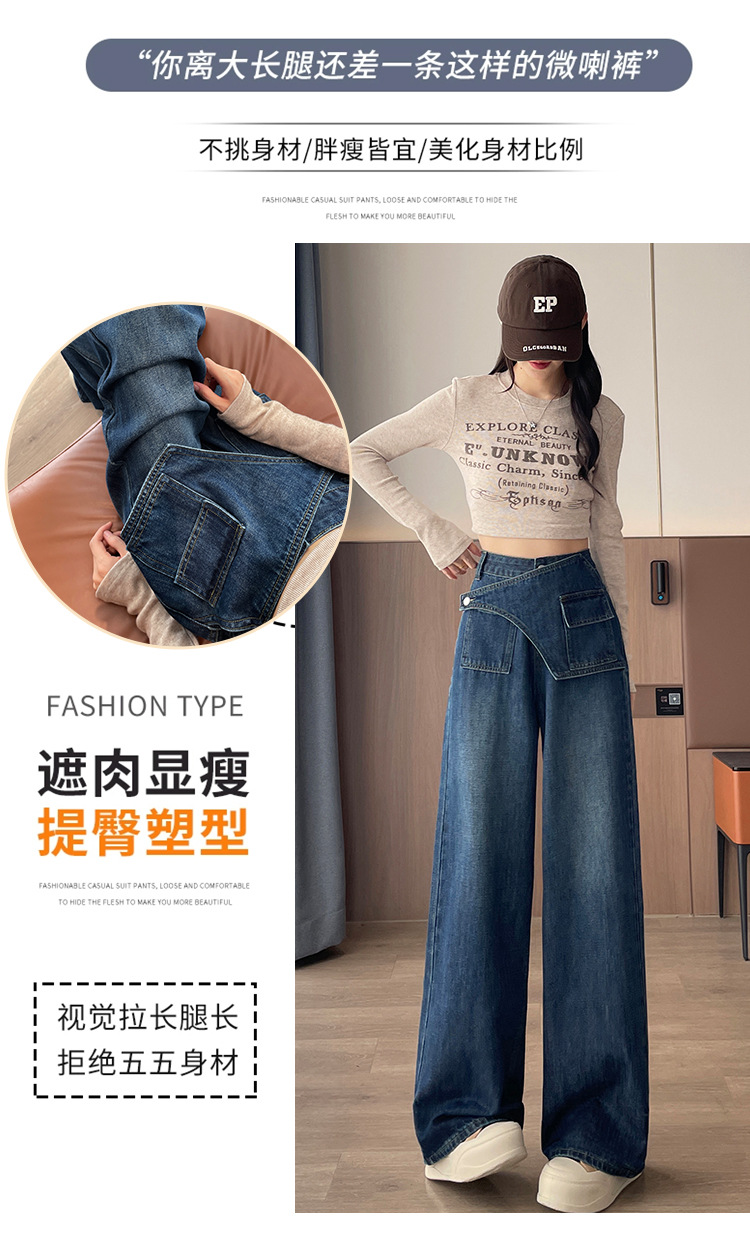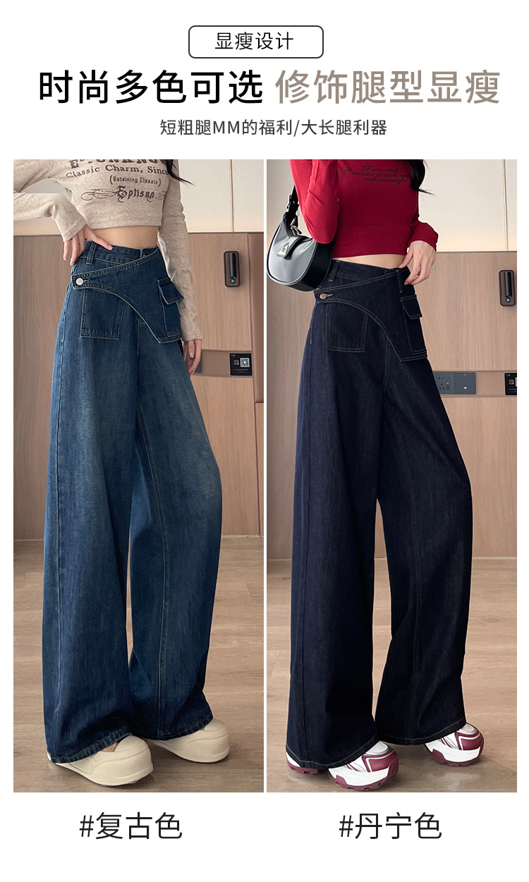 复古蓝阔腿牛仔裤女秋季2025新款高腰宽松时尚小个子拖地直筒裤子