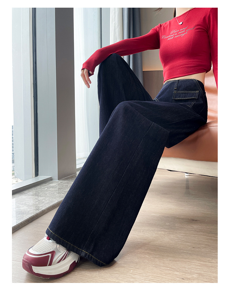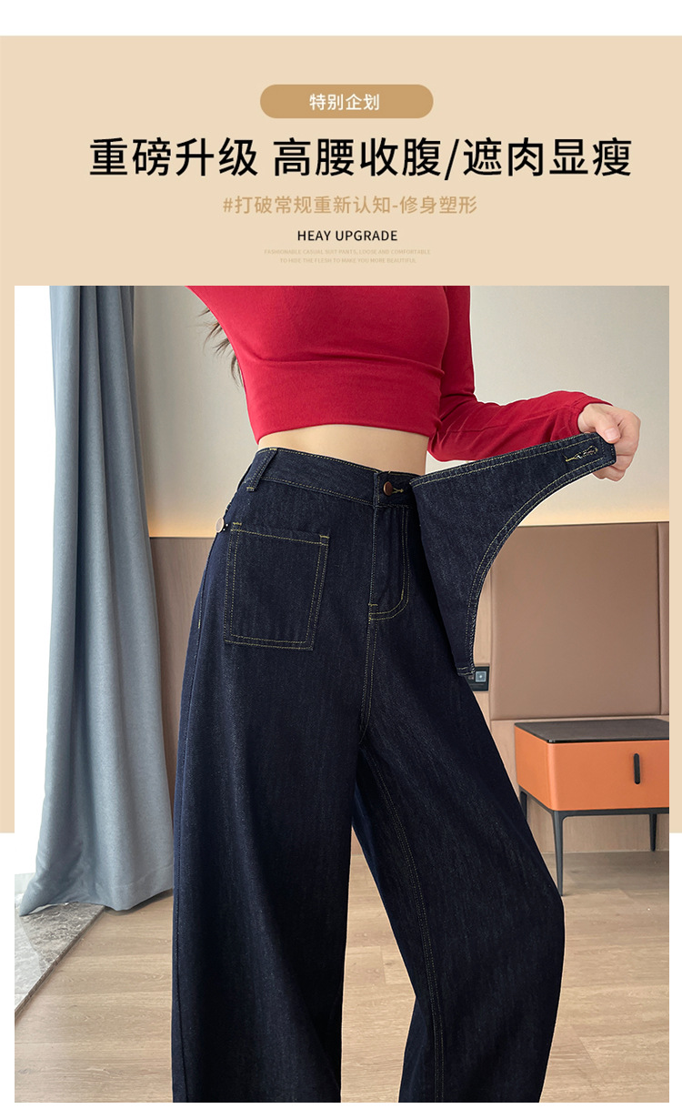 デニムブルーストレートジーンズ女性の秋冬 2025 新しいハイウエストルーズ弾性フロアモップワイドレッグパンツ女性の冬