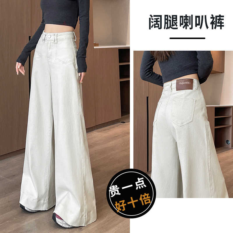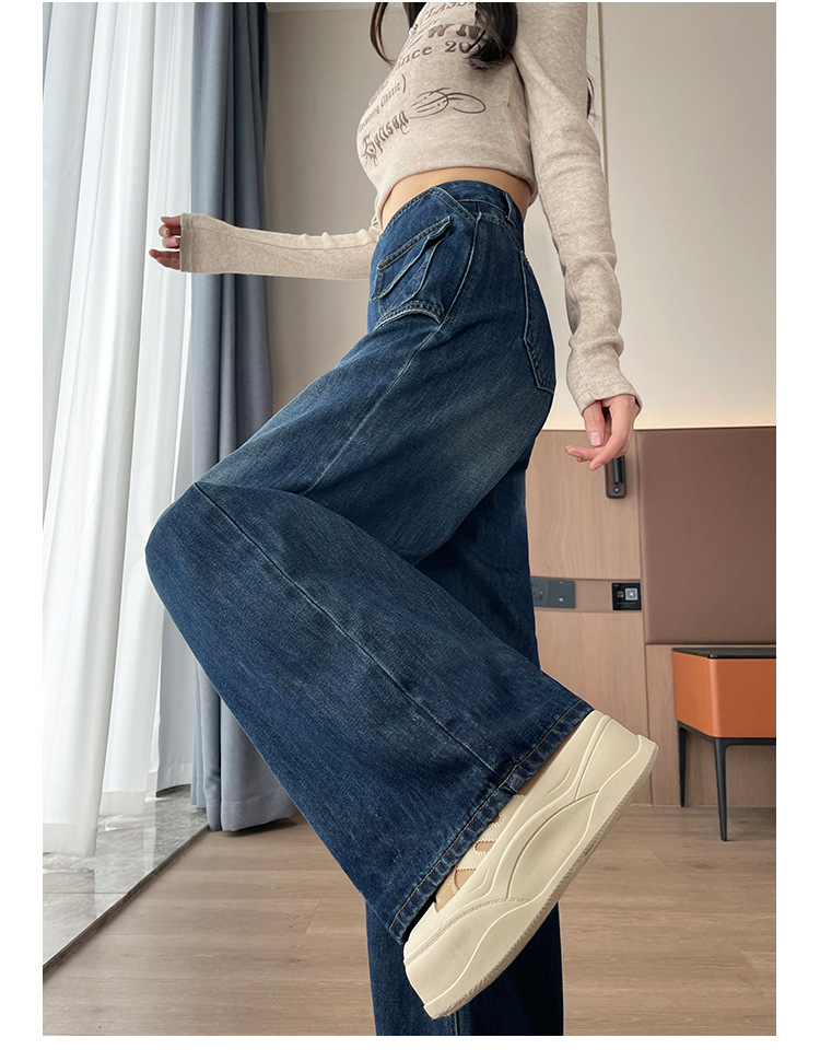 レトロブルーワイドレッグジーンズ女性のための秋冬 2025 新しいハイウエストルーズ梨型ボディ小トランペットパンツ