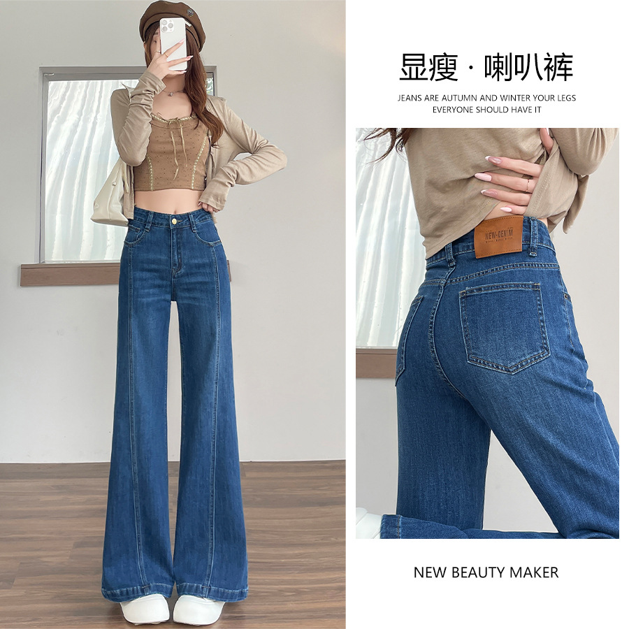 复古蓝微喇加绒牛仔裤女秋冬2026新款高腰显瘦梨型身材马蹄喇叭裤