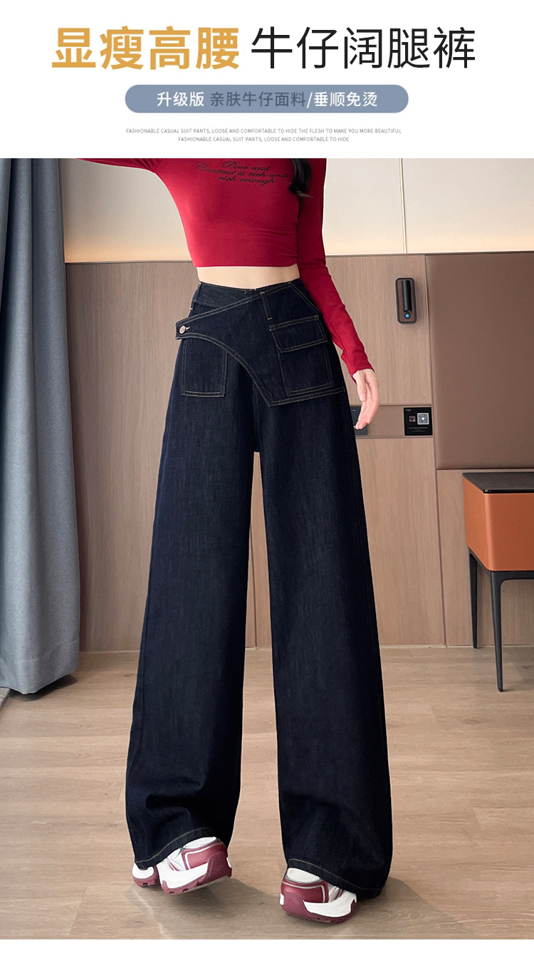 屁帘假两件阔腿加绒牛仔裤女秋冬季2025新款高腰设计感拼接直筒裤