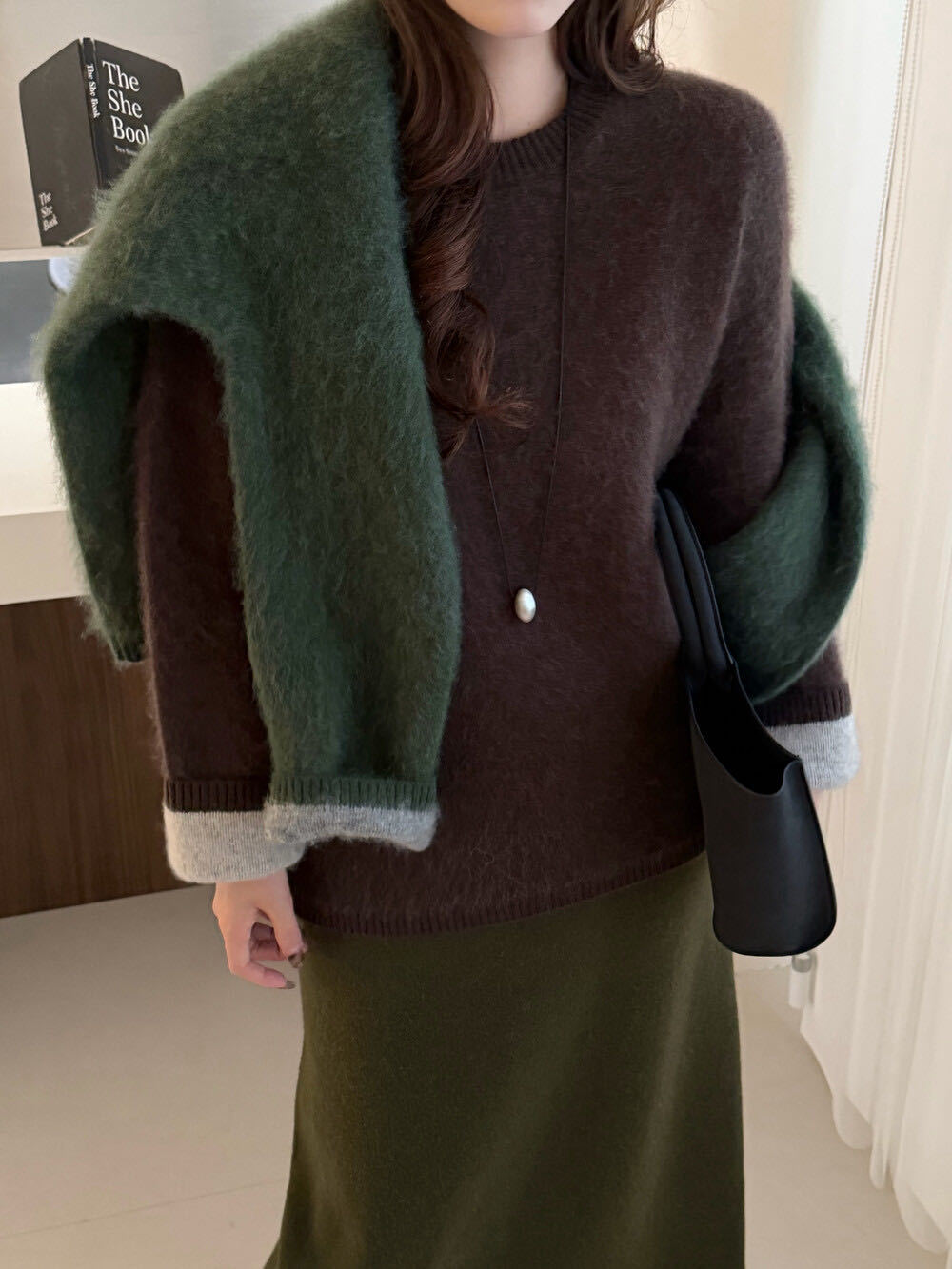 高級感のあるフェイクツーピースウールセーターコート レディース 秋冬トップス 25新作 レディース服 コントラストカラー ケーブルニットカーディガン