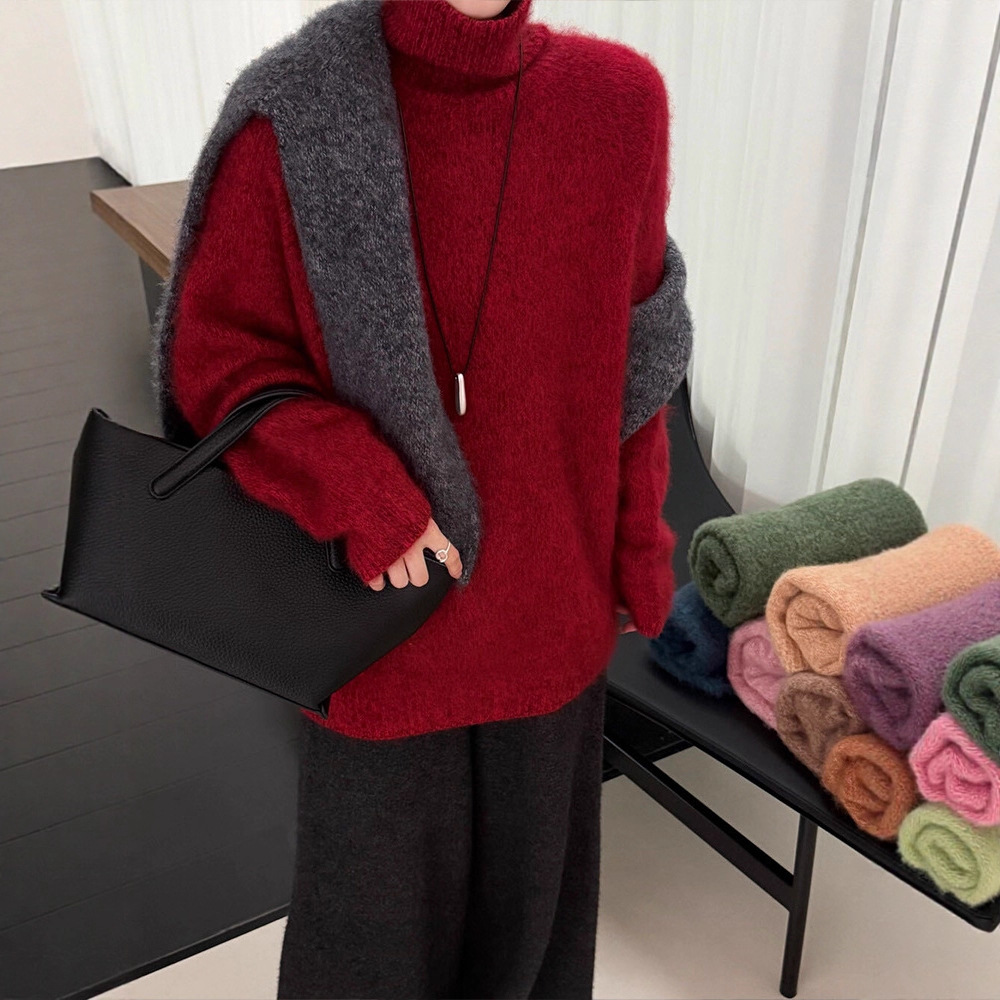 絶妙なG品質ニッチアルパカウールラウンドネックウールセーター女性用2025秋冬怠惰なルーズニットセーター