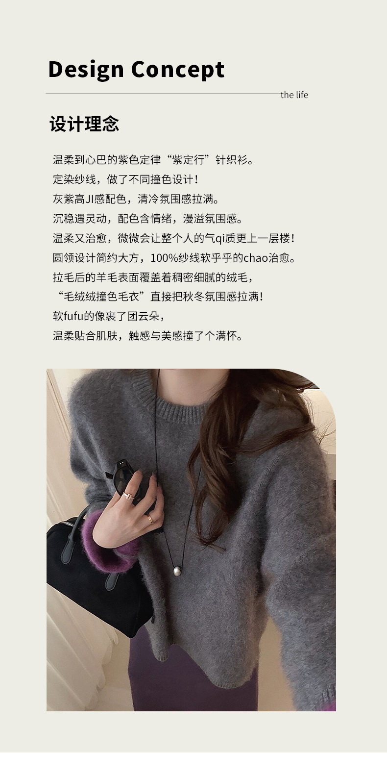 [拉绒系列]混纺羊绒羊毛毛衣女秋冬外套25新款女装内搭打底针织衫