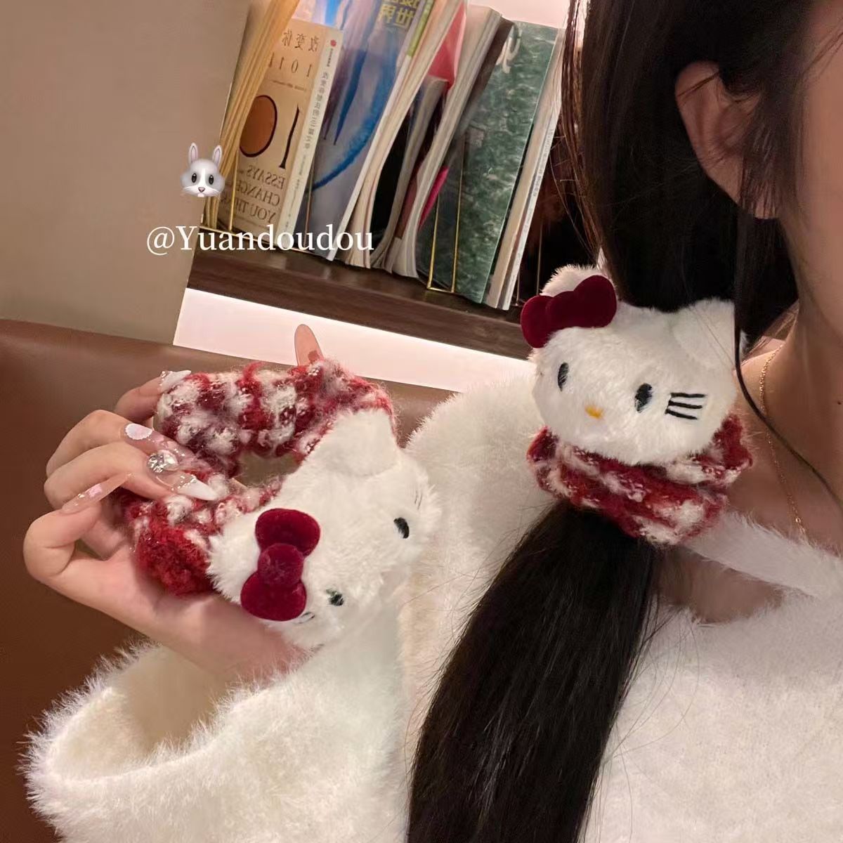 可爱Kitty猫大肠发圈秋冬毛绒红色发绳韩版少女低马尾丸子头发绳