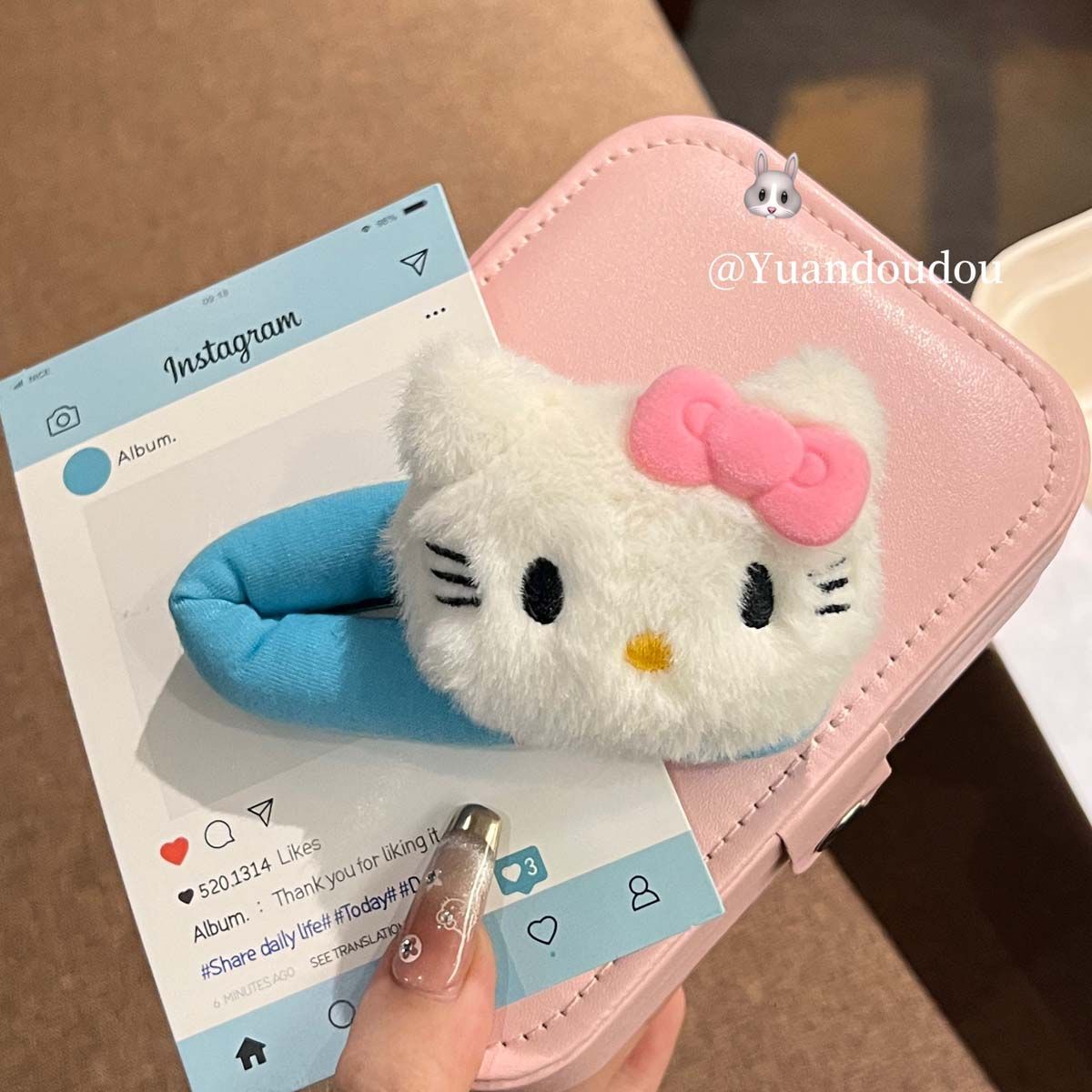 甜美少女心粉色kt毛绒发夹女生可爱卡通侧边碎发掰掰夹bb夹发饰品