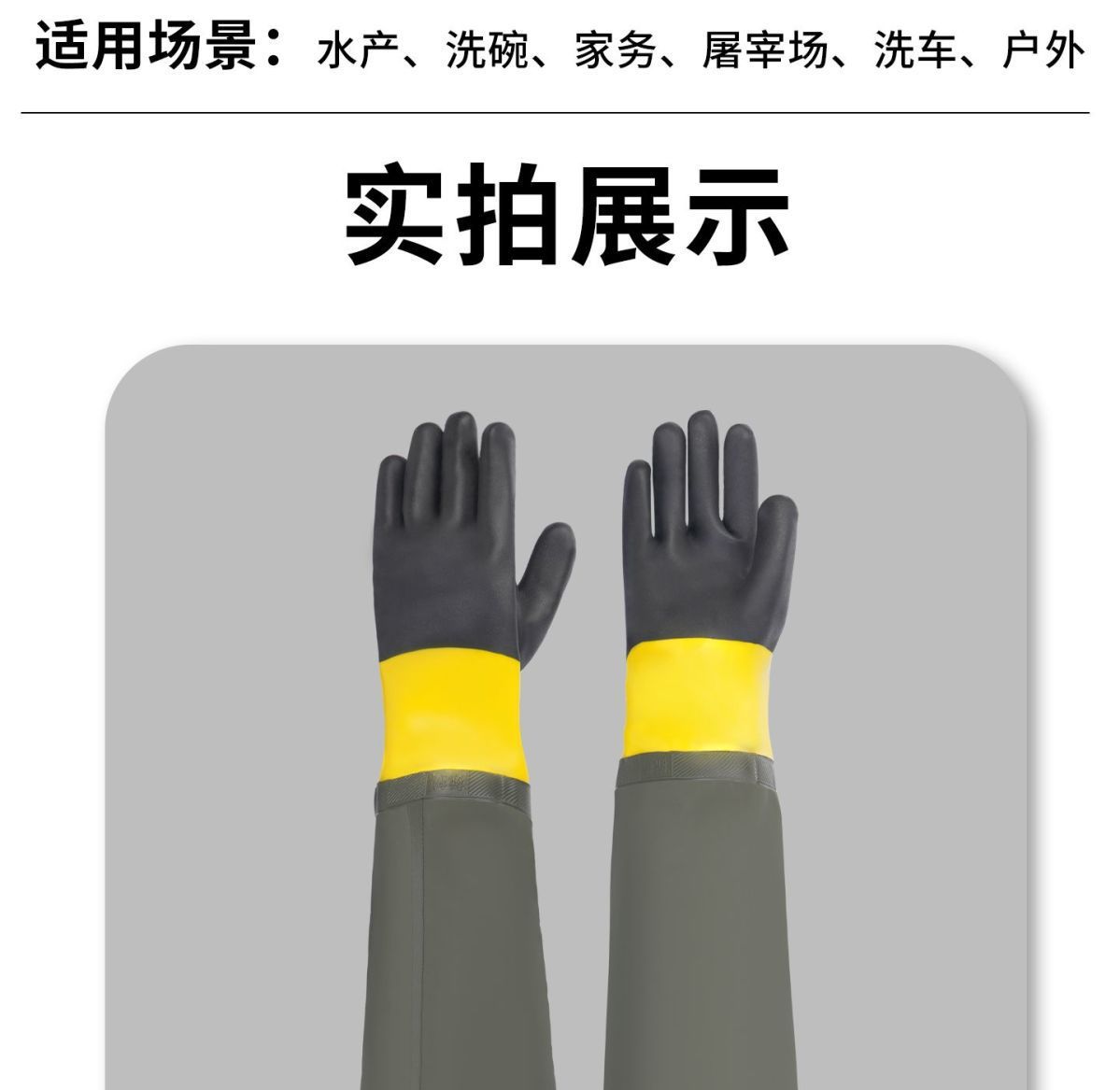 水产海鲜抓鱼杀鱼捕鱼手套洗碗洗车70cm加长防水防油手套劳保套袖