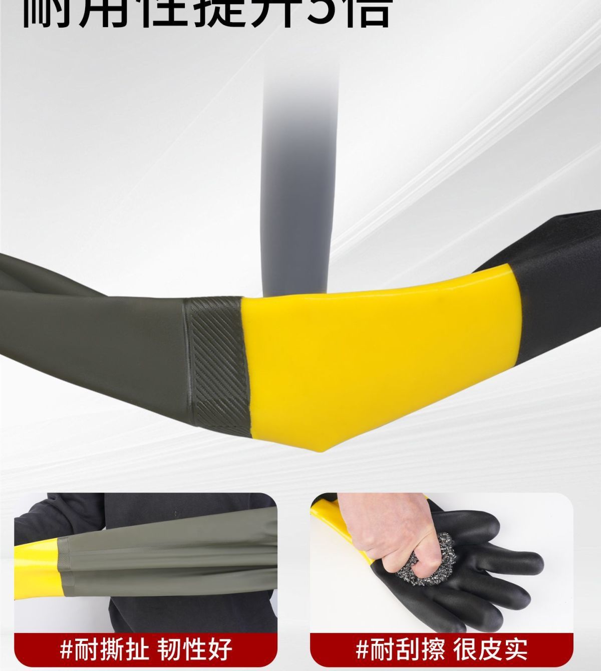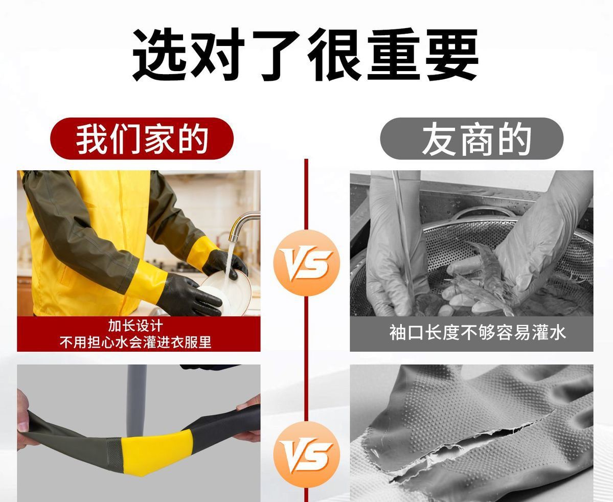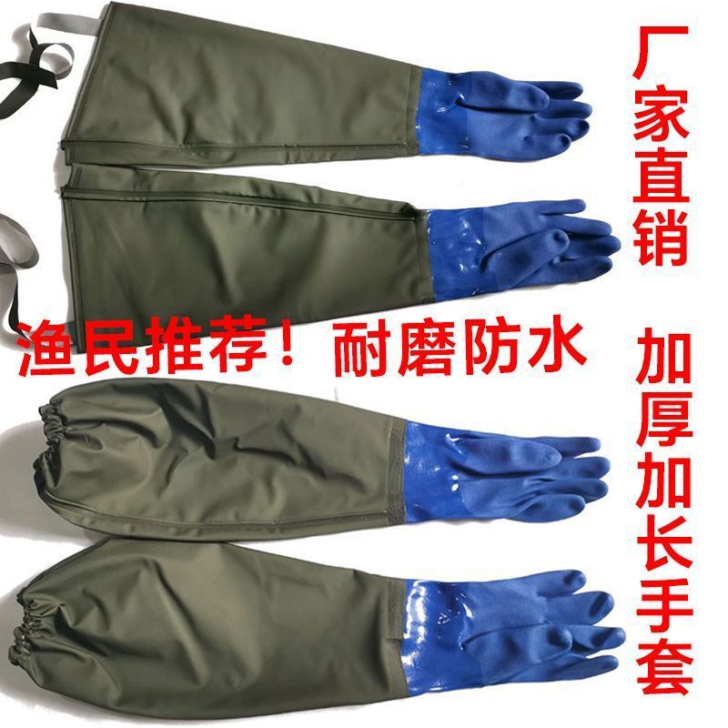 防水捕鱼手套橡胶水产加绒耐磨劳保带袖抓鱼挖藕打渔长袖劳保防护