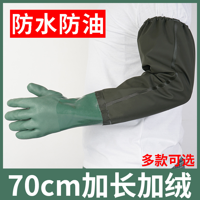 加长防水手套70cm加绒耐磨劳保长袖加厚洗车挖藕抓鱼捕鱼水产专用