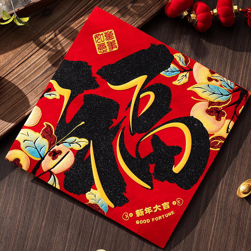 2025新型綿布福字大門貼り蛇年春節正月春聯春節家庭用対聯バックゴム飾り