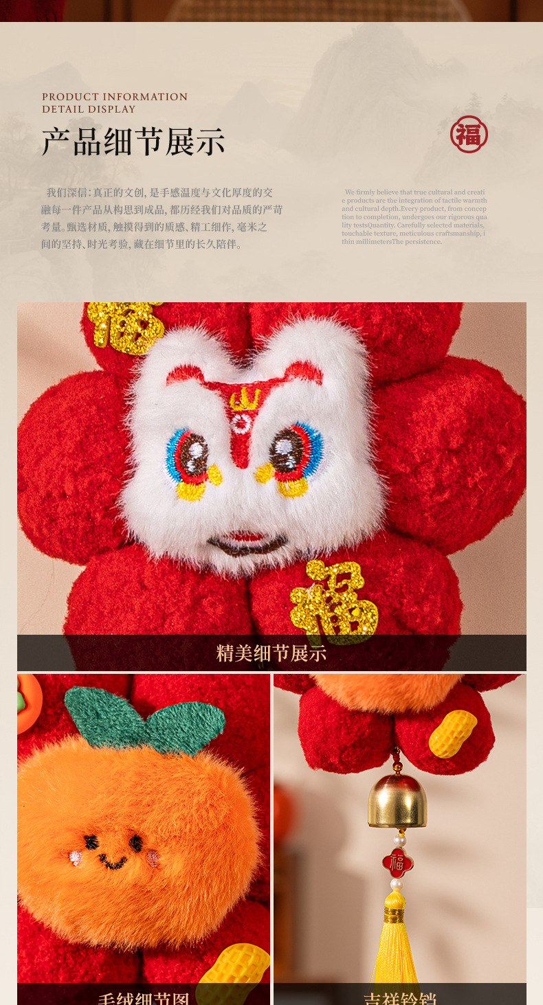 2026新年挂件毛绒玩偶小马春节铃铛挂件喜庆装饰挂件醒狮小马挂饰