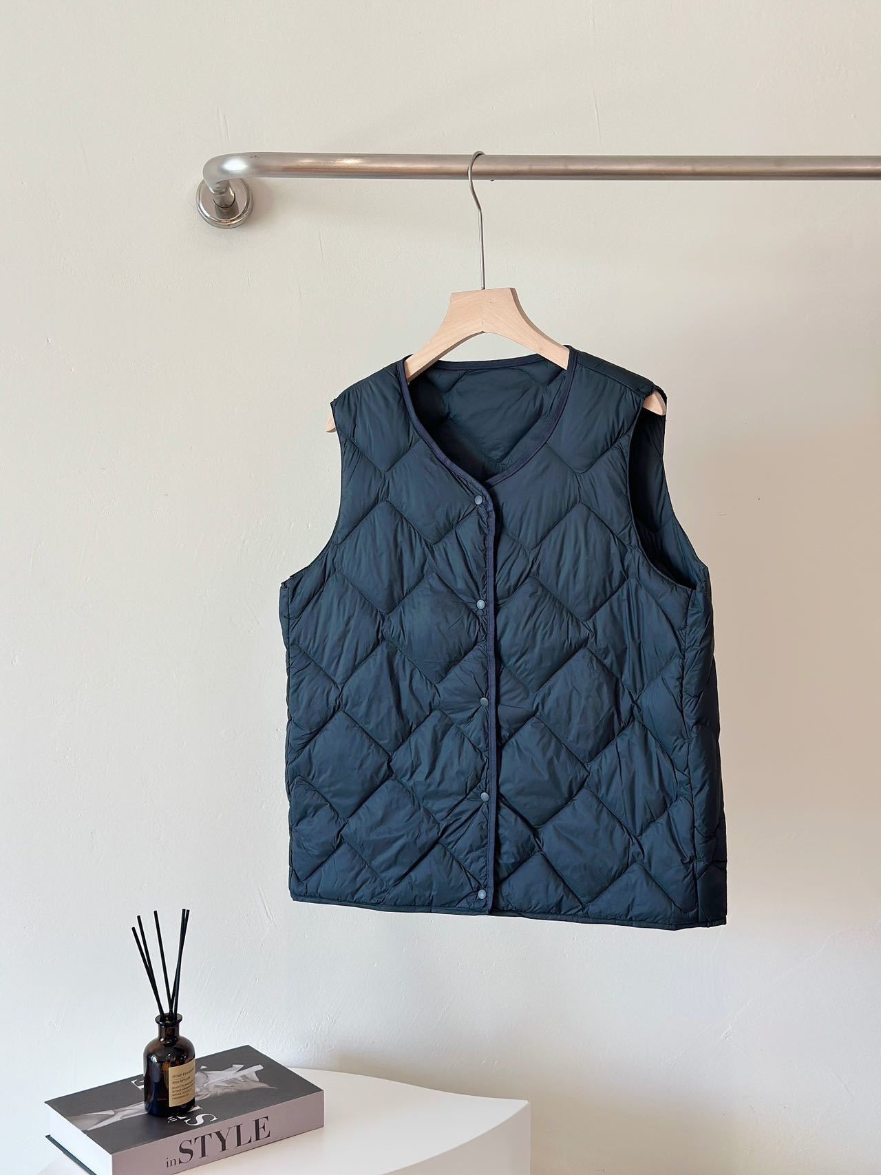 跨境TikTok无领内胆女士马甲V领轻薄羽绒服保暖外套大码坎肩背心