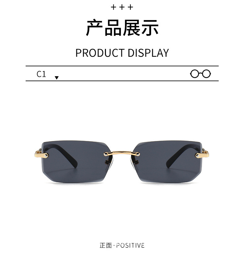 复古跨境墨镜女高级感小方框欧美无框个性嘻哈眼镜时尚潮太阳镜男