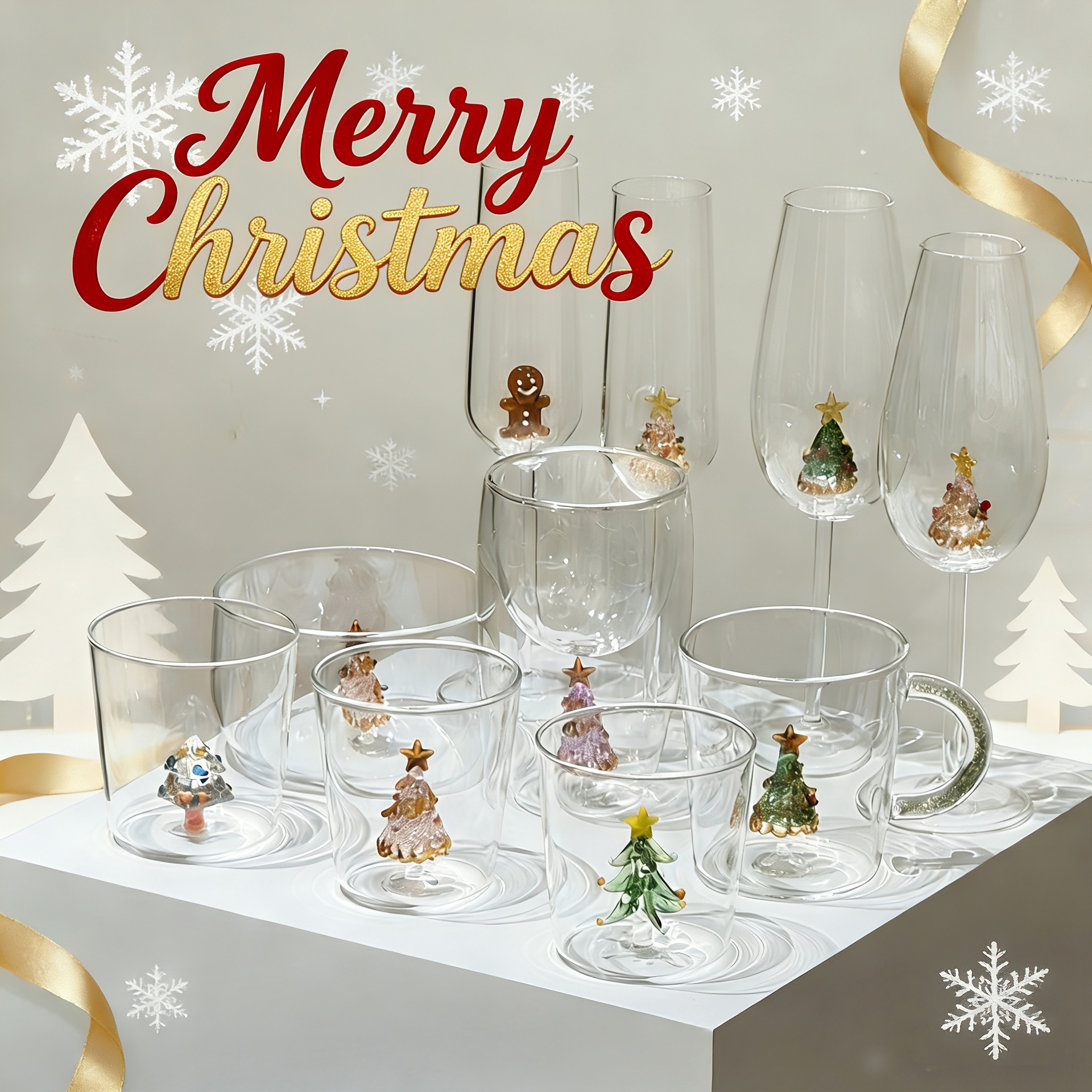 高颜值玻璃杯圣诞节日礼物高级感小众杯子耐高温家用高硼硅水杯