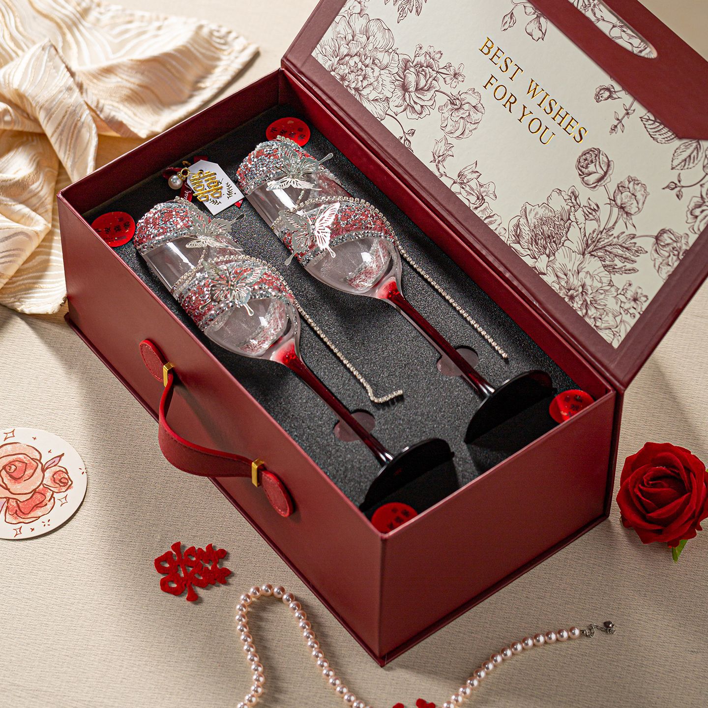结婚敬酒杯新婚订婚礼物送新人新娘闺蜜生日礼物高脚杯香槟杯一对