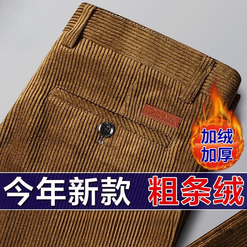 灯芯绒男裤秋冬加绒加厚中老年粗条绒灯芯绒休闲裤宽松高腰直筒裤