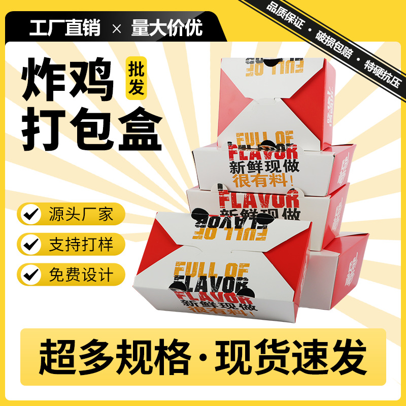 炸鸡打包盒子小吃鸡腿鸡翅商用免折纸盒打包盒韩式一次性外卖餐盒
