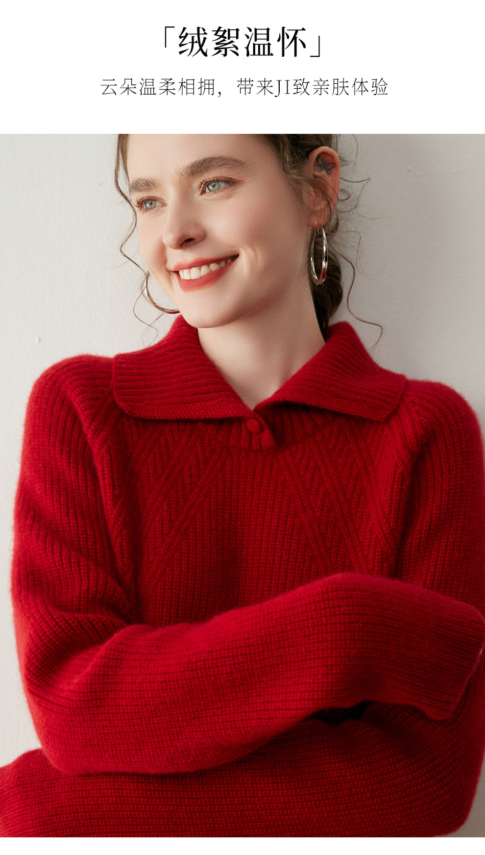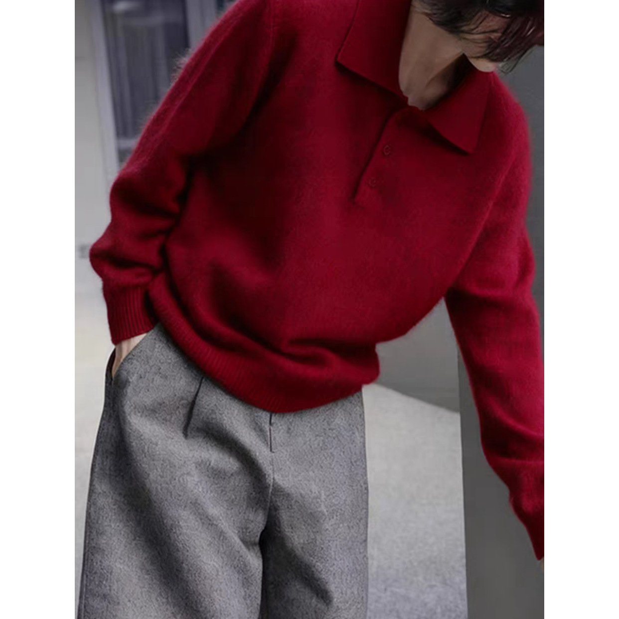 新年本命年复古红polo领正肩打底毛衣慵懒高级感软糯针织衫2025冬