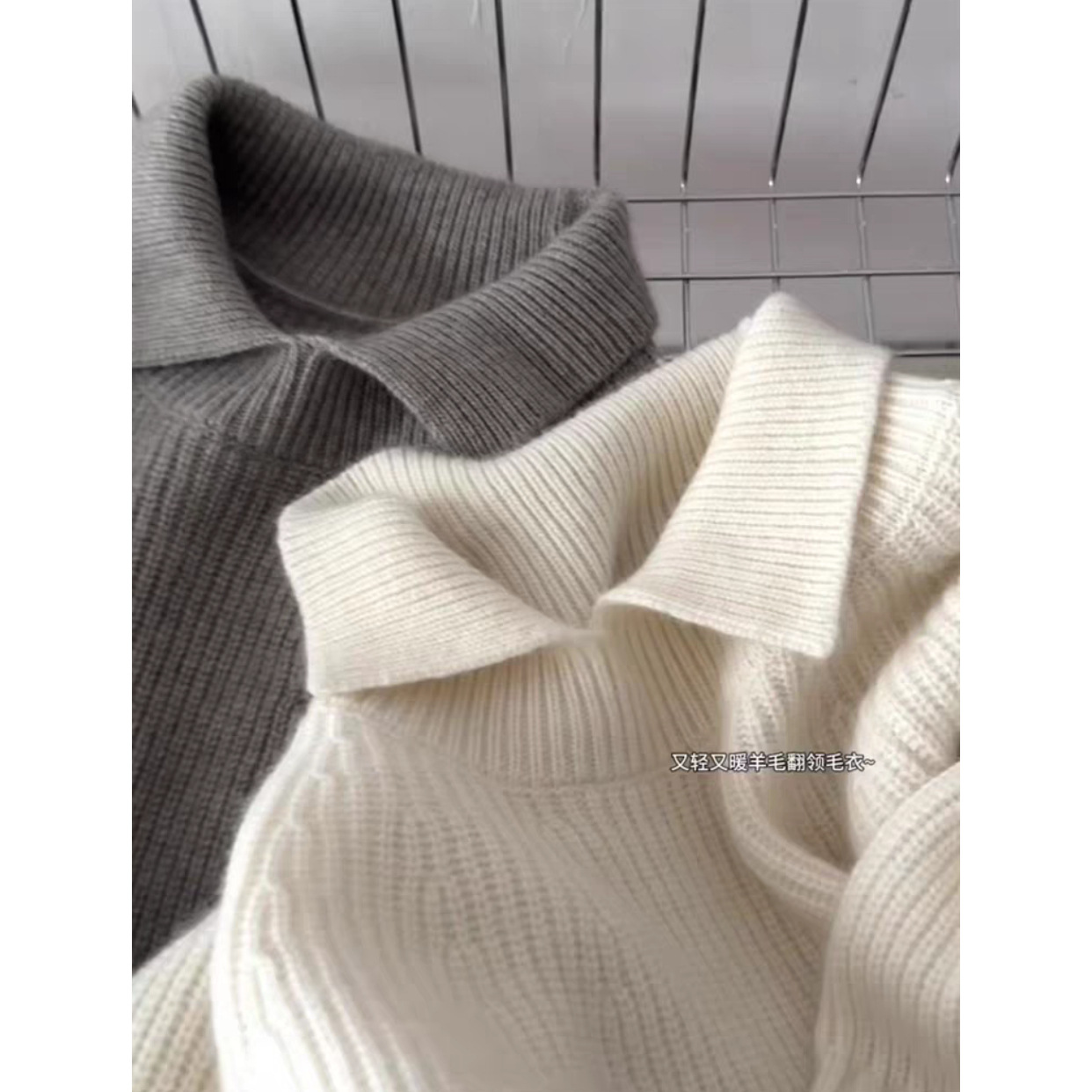 软糯糯白色粗针翻领套头厚毛衣女秋冬慵懒宽松可外穿内搭针织上衣