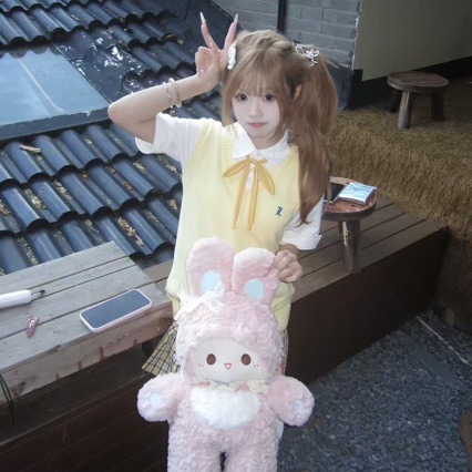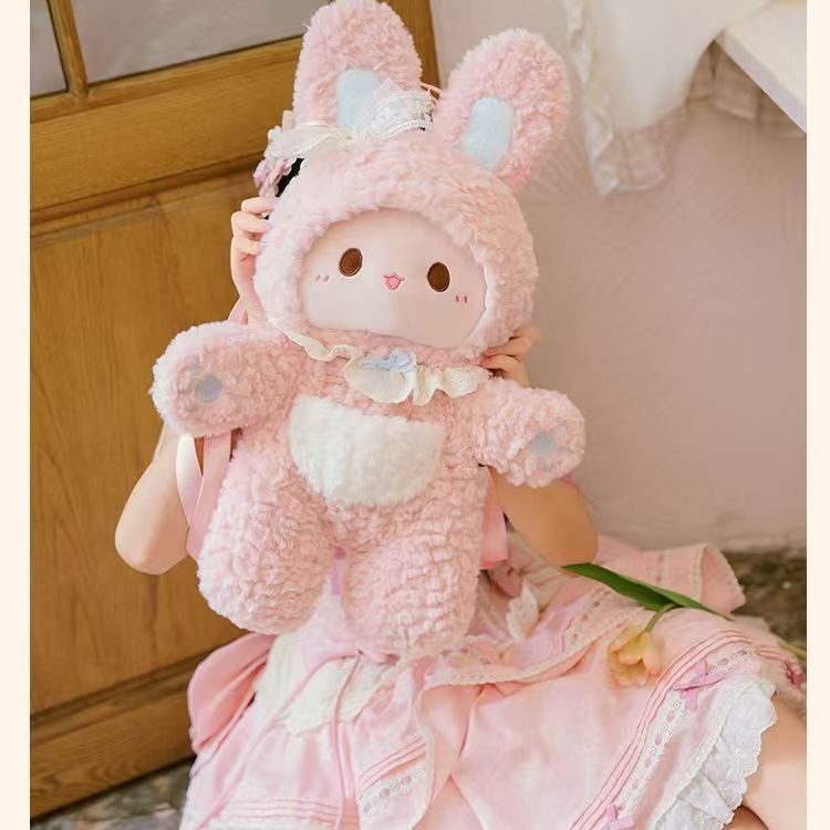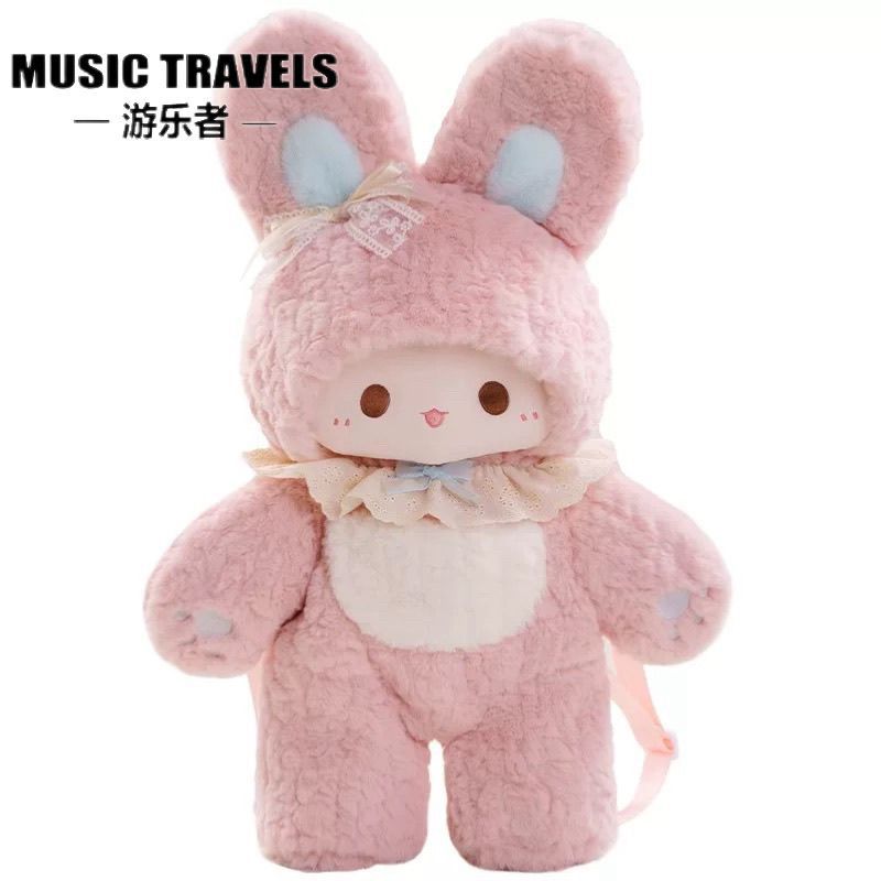 游乐者粉色兔子双肩包毛绒可爱甜美少女心蕾丝jk玩偶包lolita背包