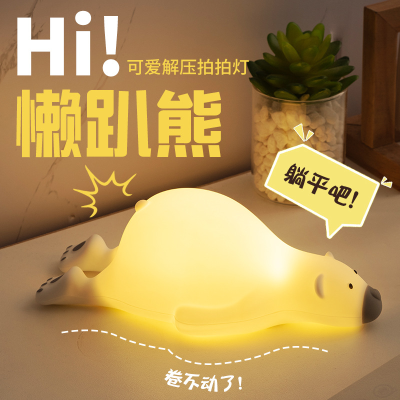 かわいい怠惰な熊が小夜灯をたたいてミニシリコンled小夜灯子供漫画寝室ベッドの雰囲気灯