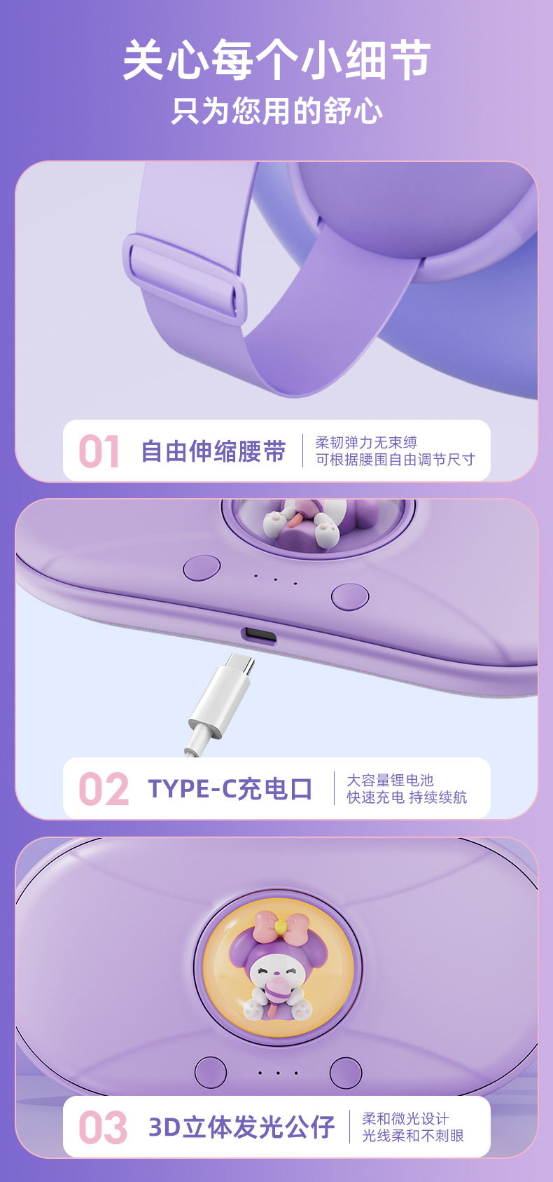 颜色 紫兰色(发热+按摩),乳白色(发热+按摩),女神粉(发热+按摩)