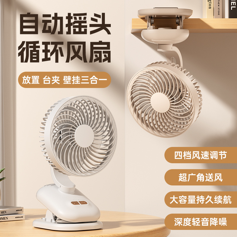 スリーインワン多機能首振りファンクリップオンサイクルファン学生寮ホームミニデスクトップ小型ファン壁掛け