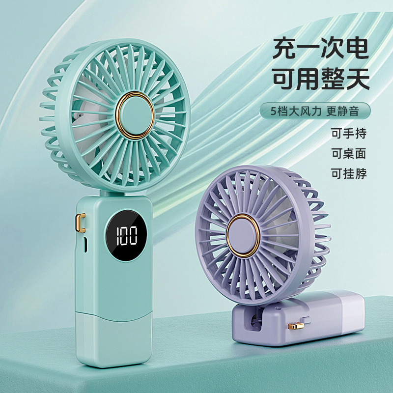 ミニ手持ちファンはデジタル表示付きで首を折って充電します。