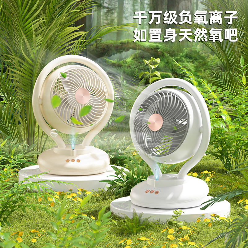 新型マイナスイオン首振りファン充電デスクトップ循環ファンオフィス学生寮屋外キャンプ扇風機
