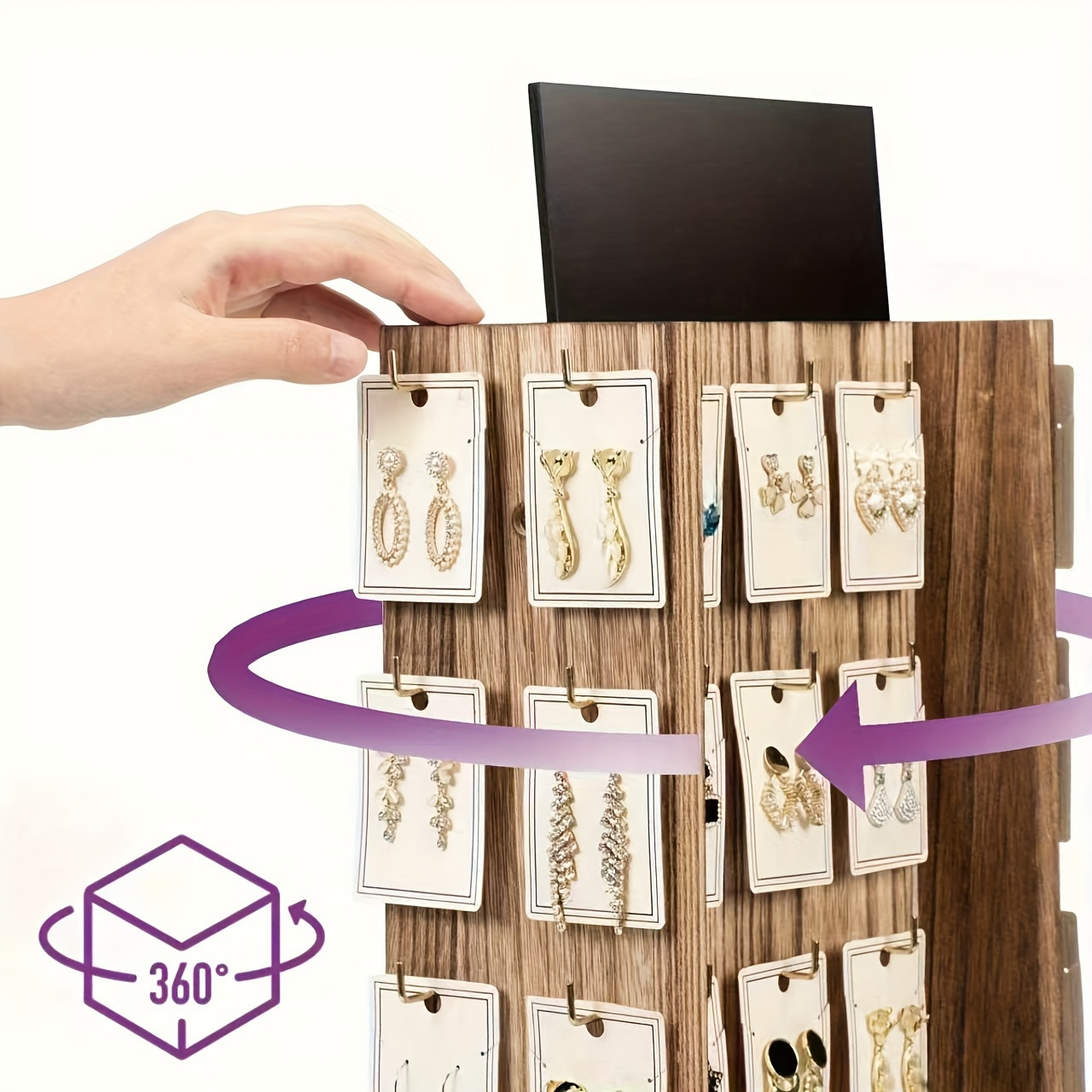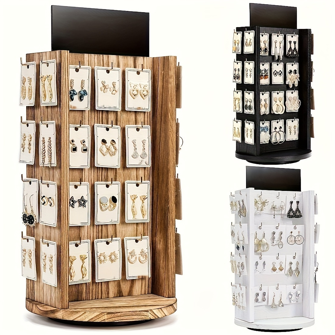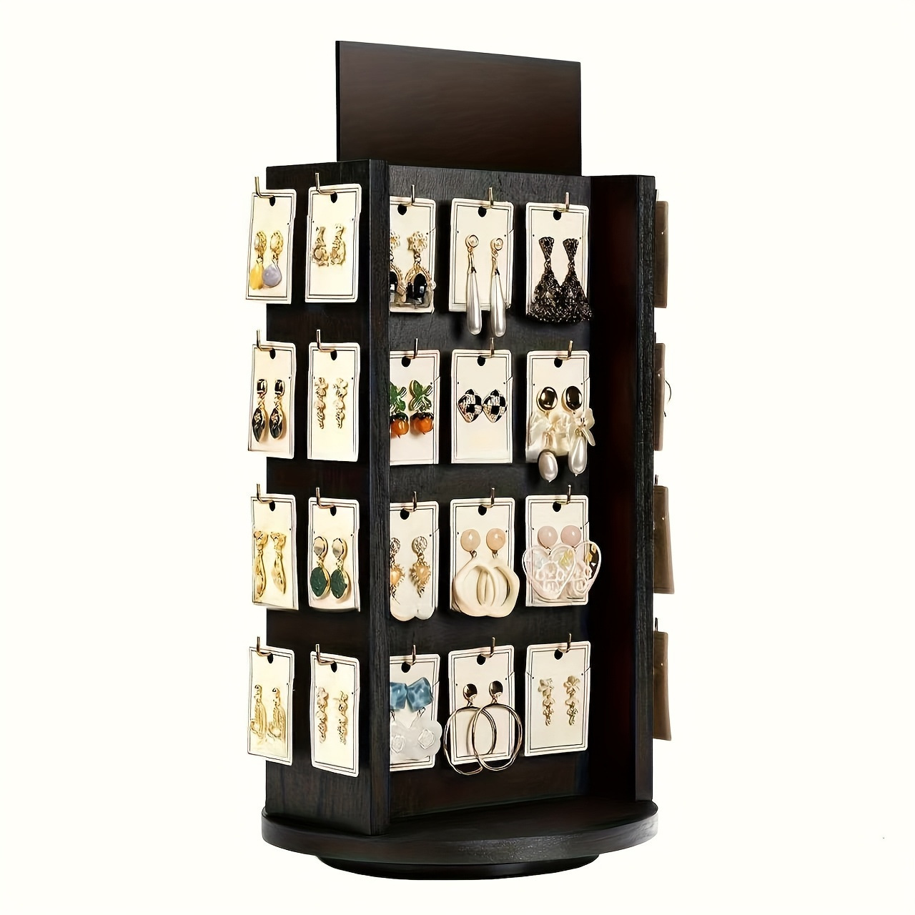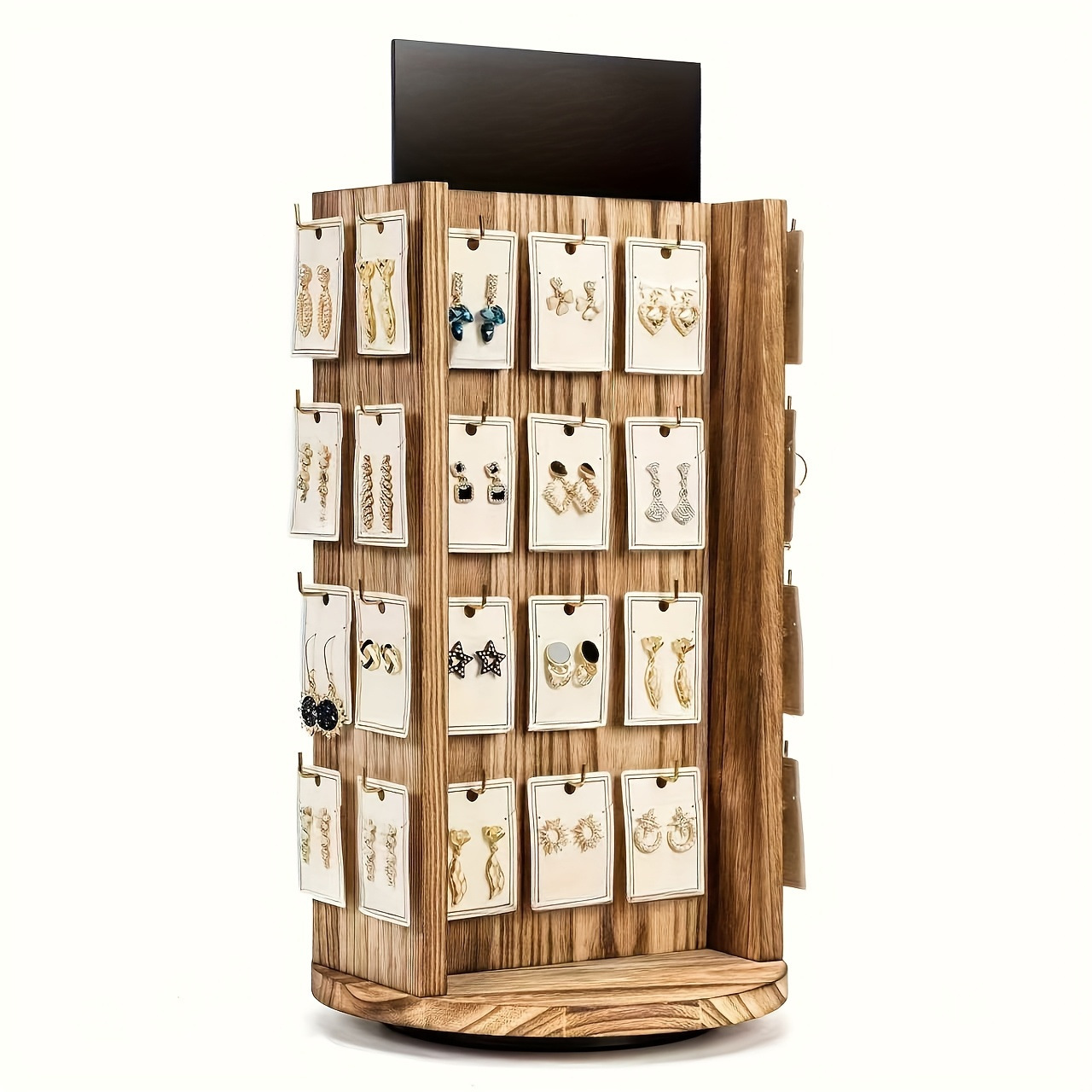 木质耳环展示架家用桌面可旋转首饰收纳架实木复古珠宝展示架子