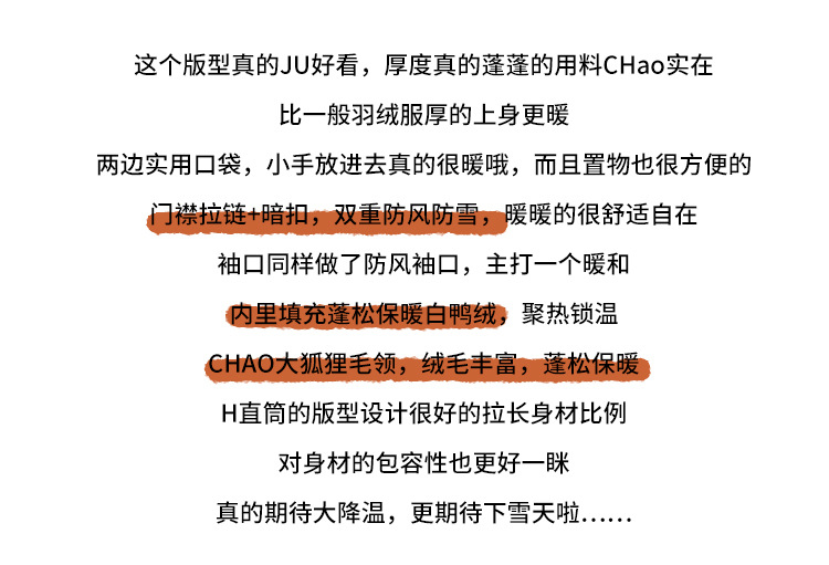 此款建议零售价不带毛领不低于358元,环保毛领不得低于368元,真貉子毛领不得低于438元,注意是券后价格,如有违反,图片举报下架,请自觉遵守。