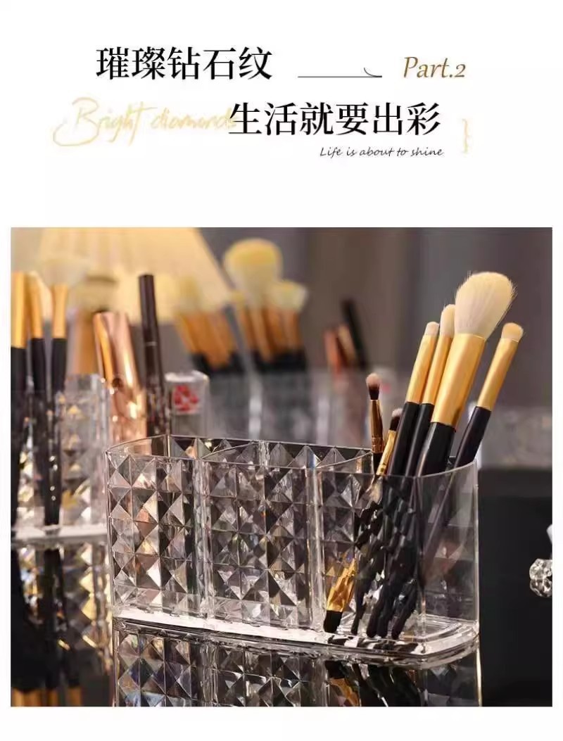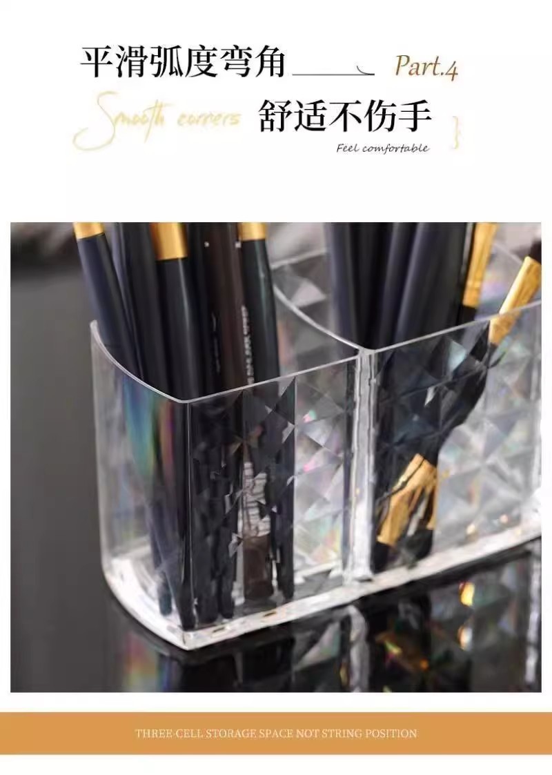 化妆品收纳盒收纳筒三格笔筒透明亚克力收纳笔筒眉笔化妆刷收纳盒