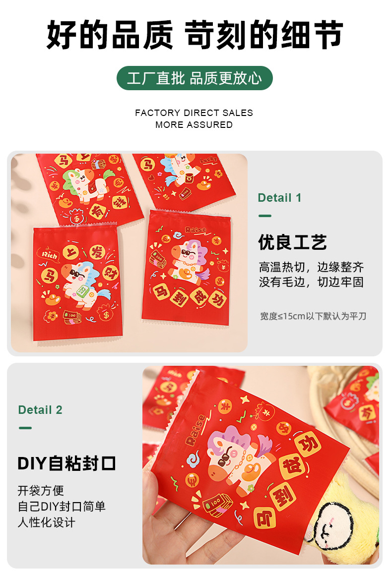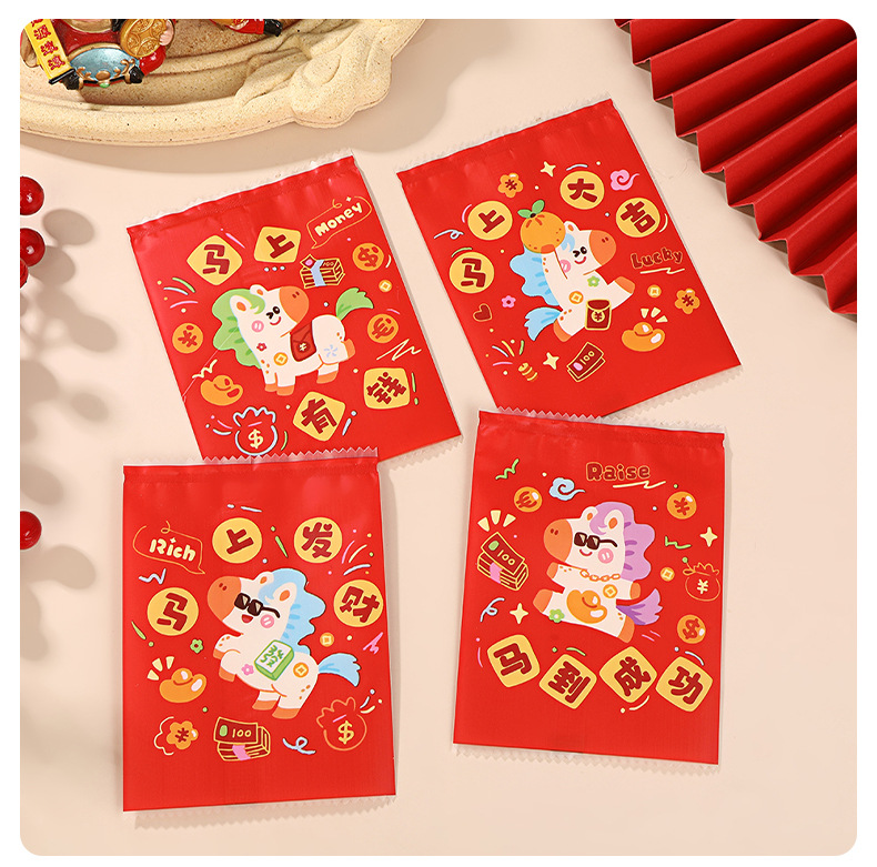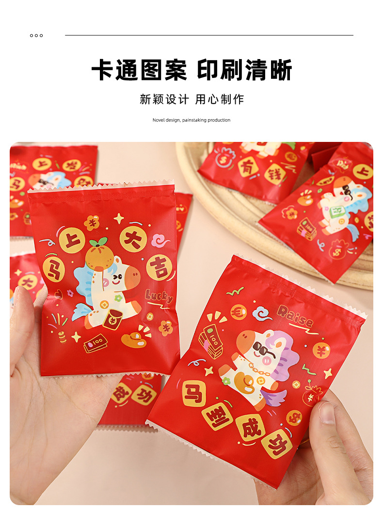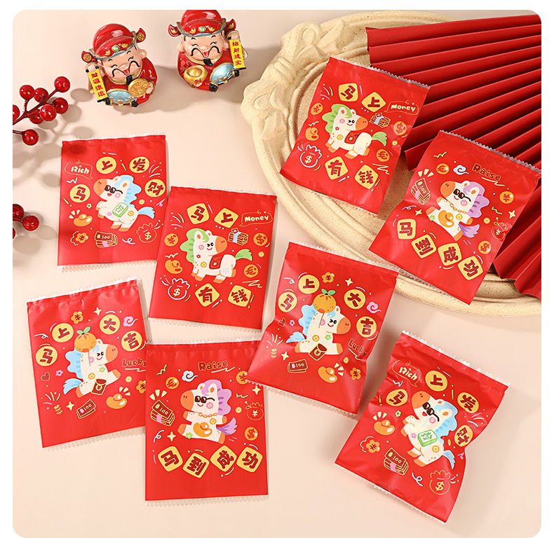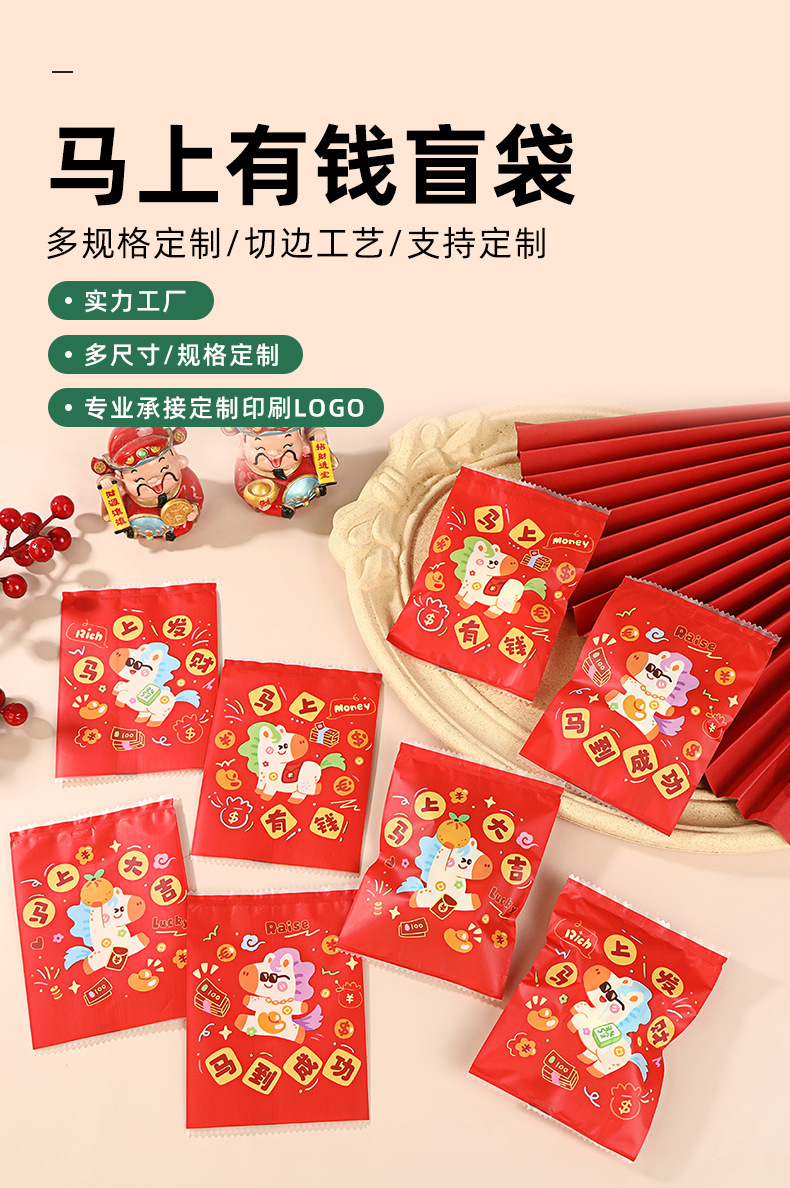 2026卡通密封袋马年新年盲袋来财喜庆自封袋糖果饼干零食包装袋现