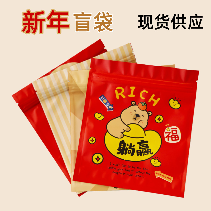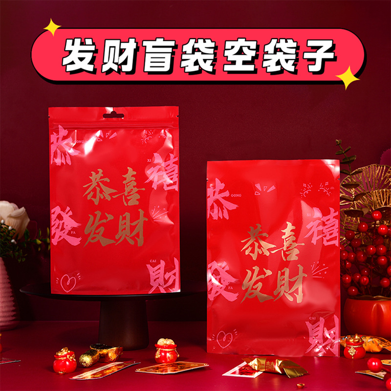 新年发财盲袋空袋子自封铝箔平口袋糖果零食小饰品喜庆盲盒包装袋