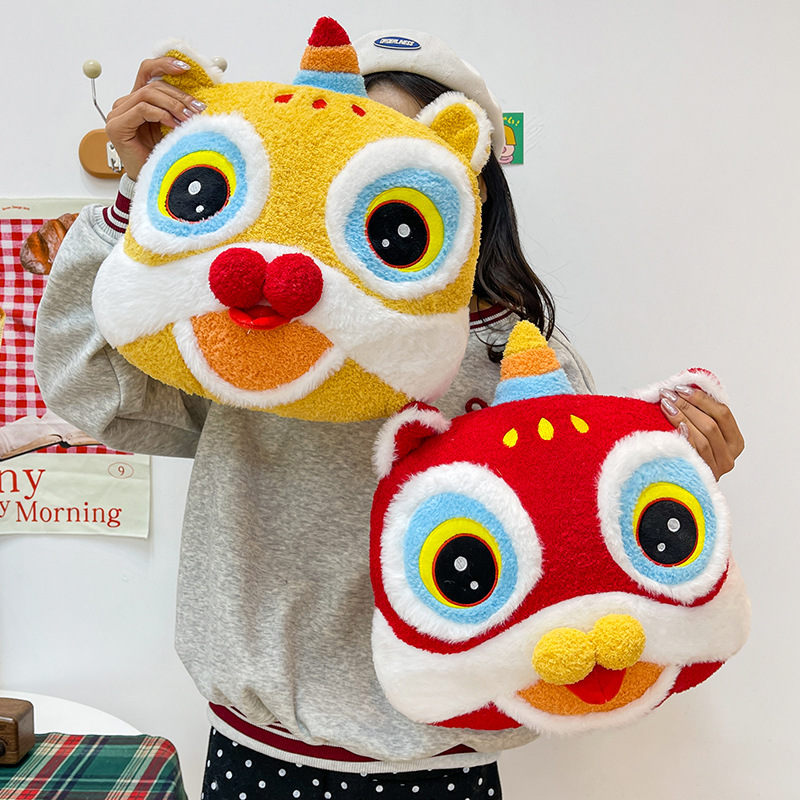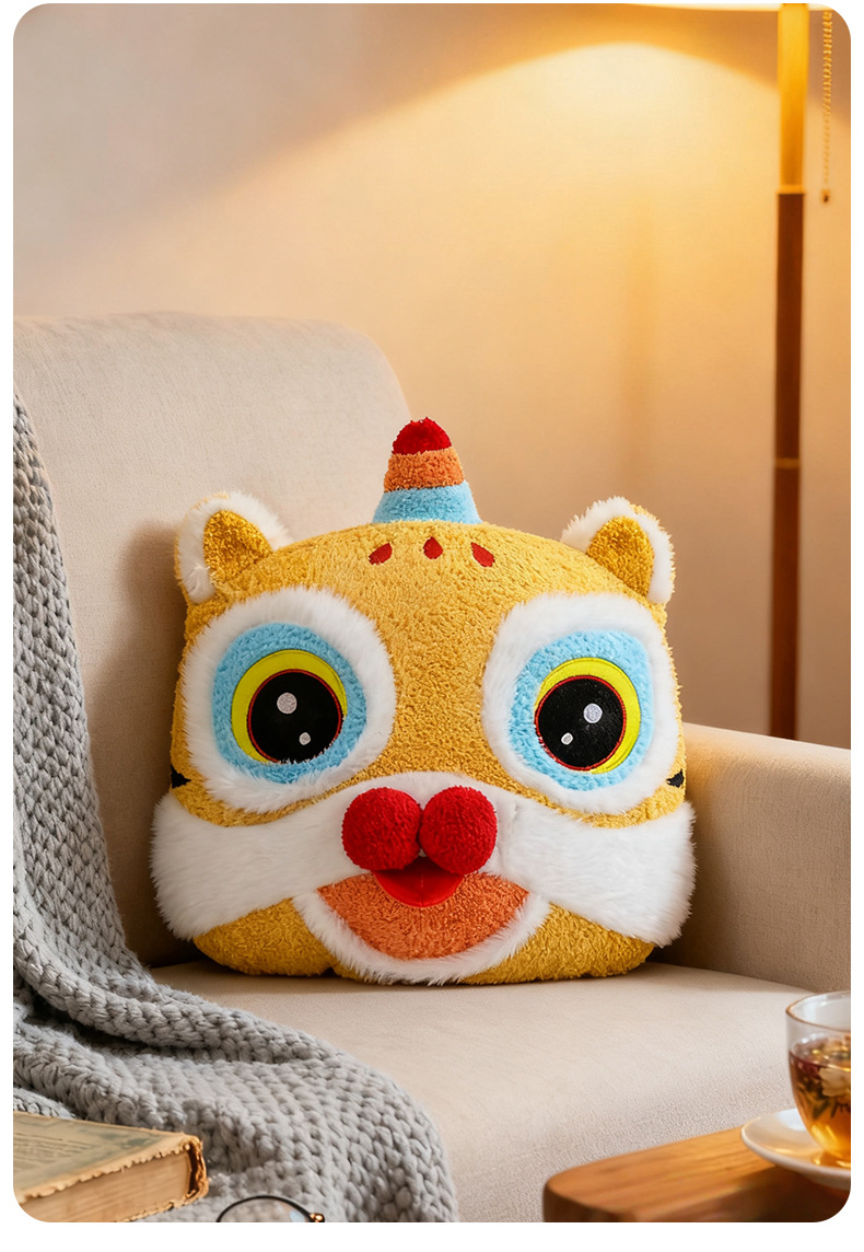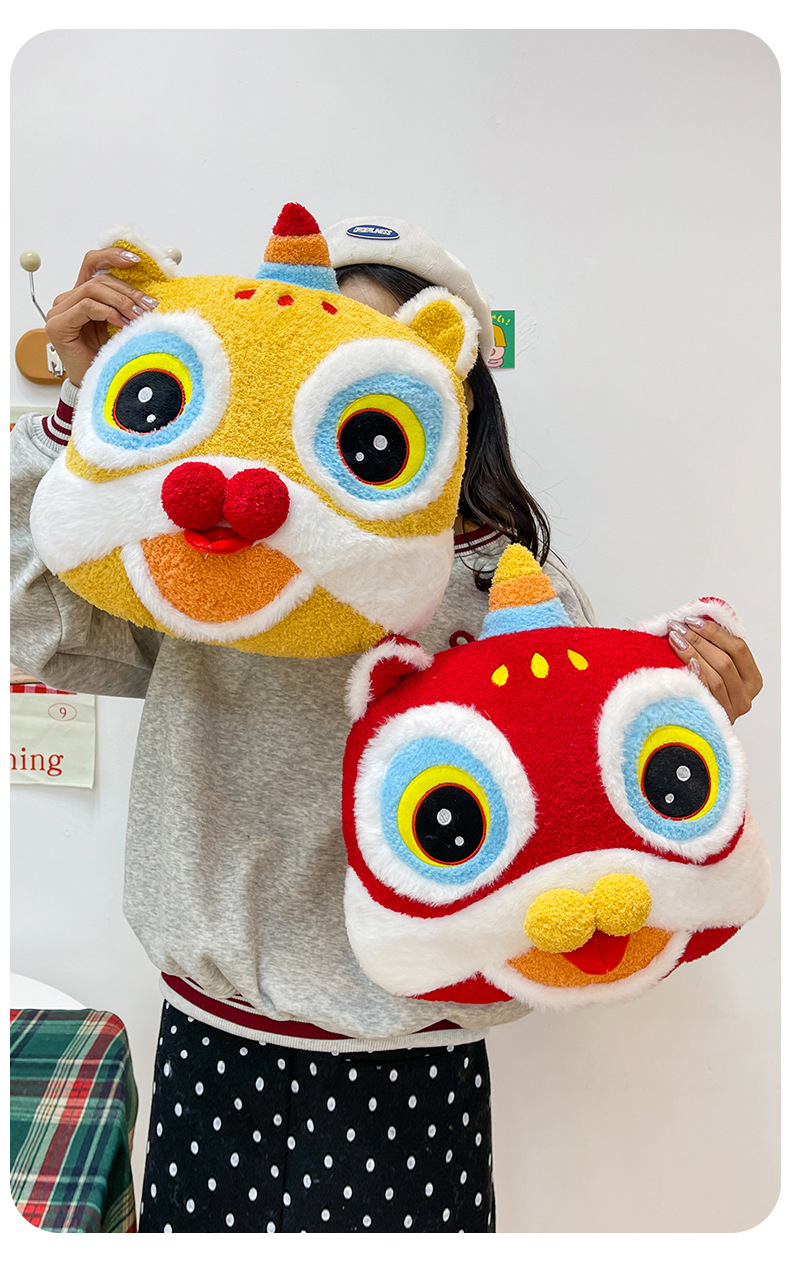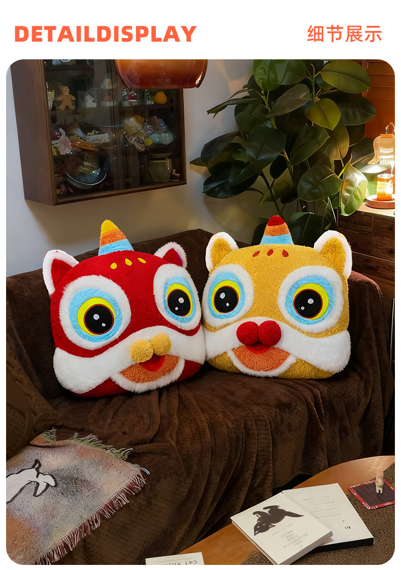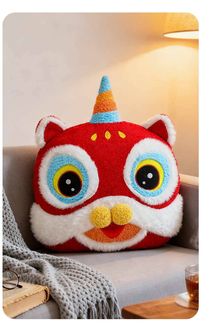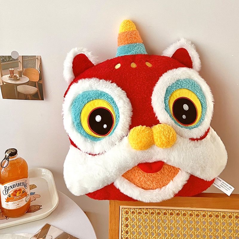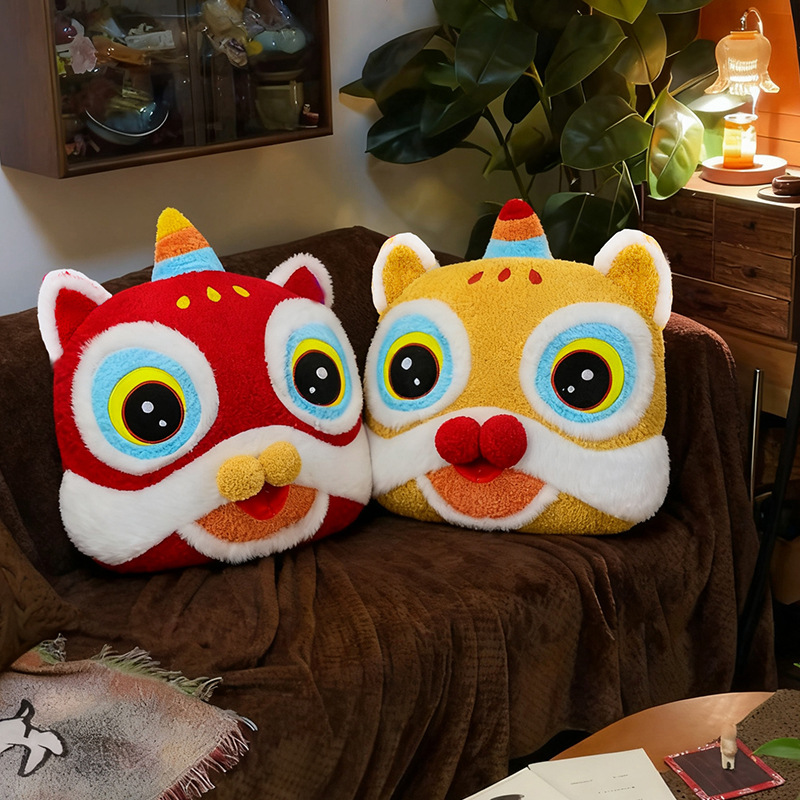 国潮醒狮新年抱枕毛绒玩具家居玩偶摆件客厅沙发靠枕公司年会礼物