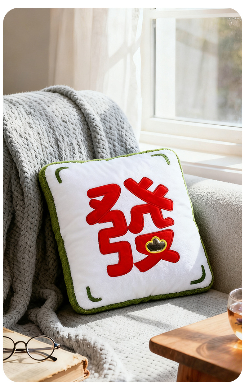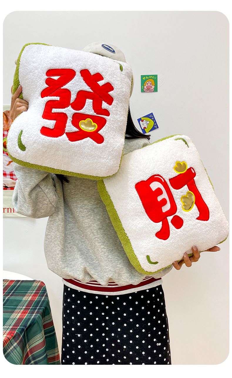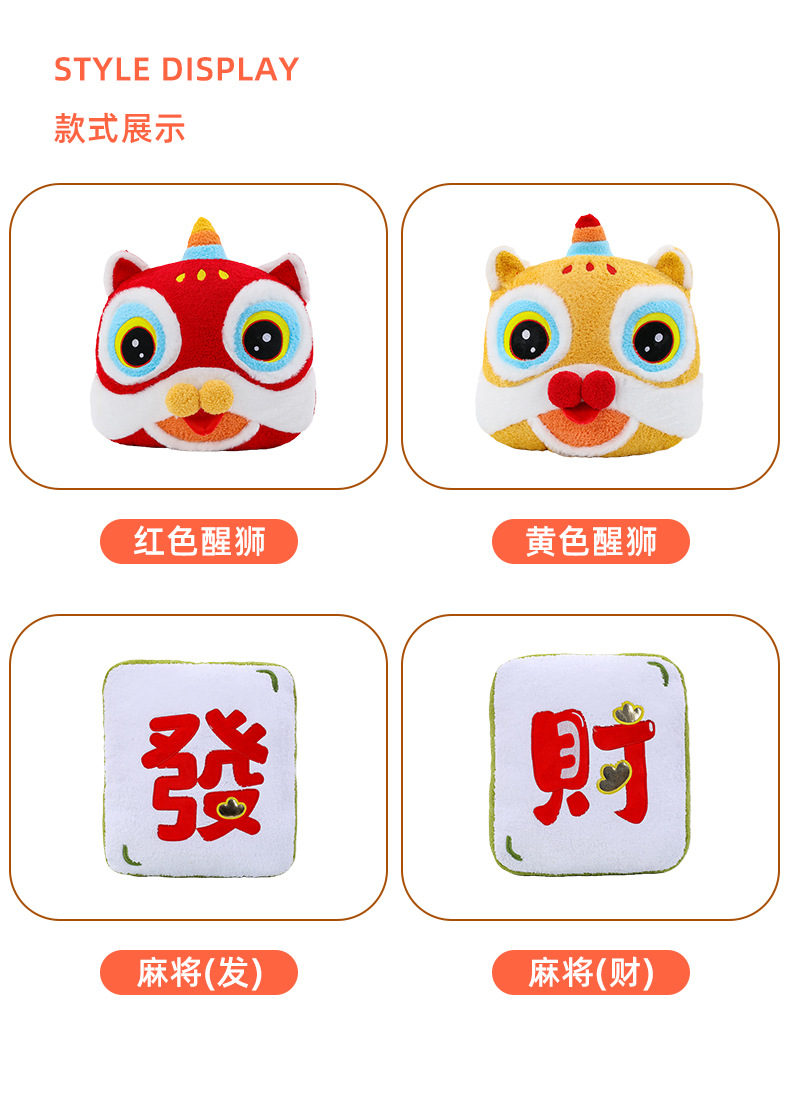 国风醒狮玩偶抱枕可爱麻将公仔沙发靠垫榻榻米坐垫毛绒玩具批发