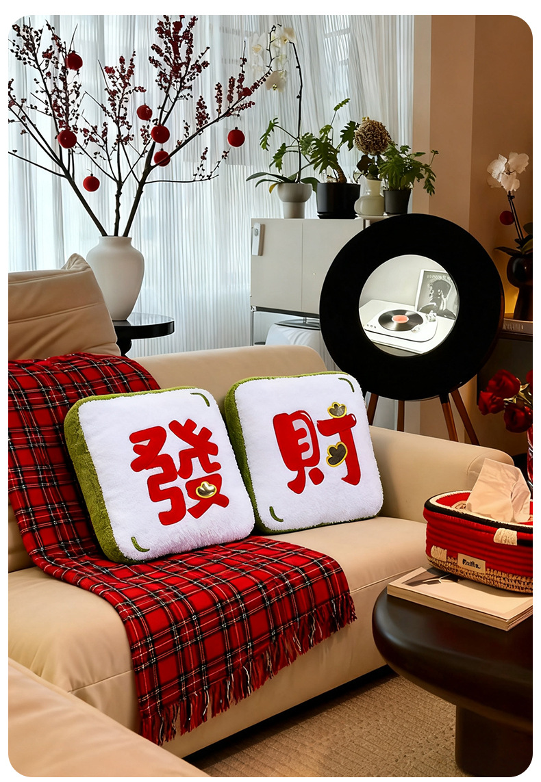 新年节日抱枕毛绒玩具公仔靠枕沙发床头靠垫客厅春节氛围装饰礼物