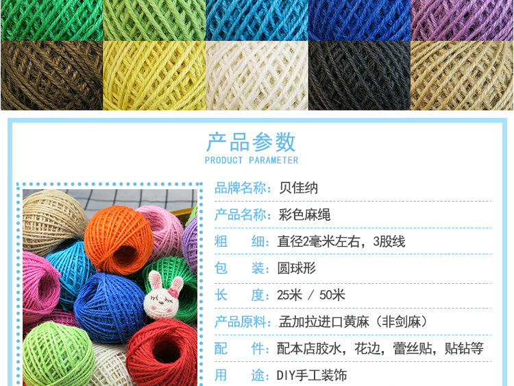 1-3mmDIY手織りカラー麻紐装飾レトロスタイル写真クリップ黄麻紐25/50メートル/10