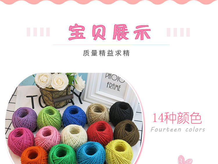 クロスボーダーカラフル麻紐DIY手編みフォトクリップ黄麻紐タッセル綿紐レトロ編み