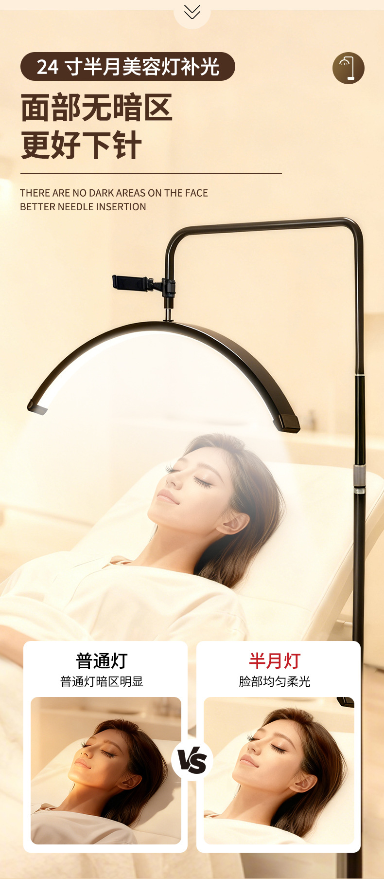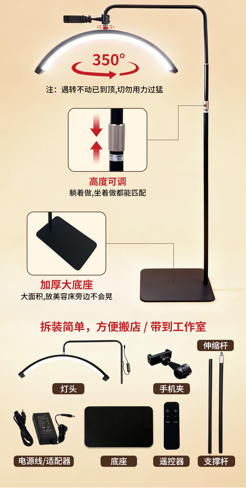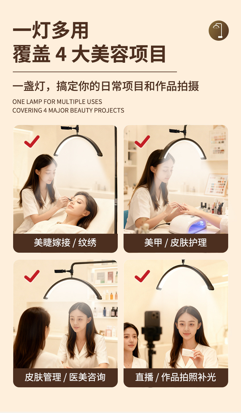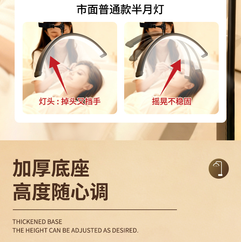 跨境半月美睫专用灯美甲灯U型半月美容纹眉绣落地24寸补光灯36W