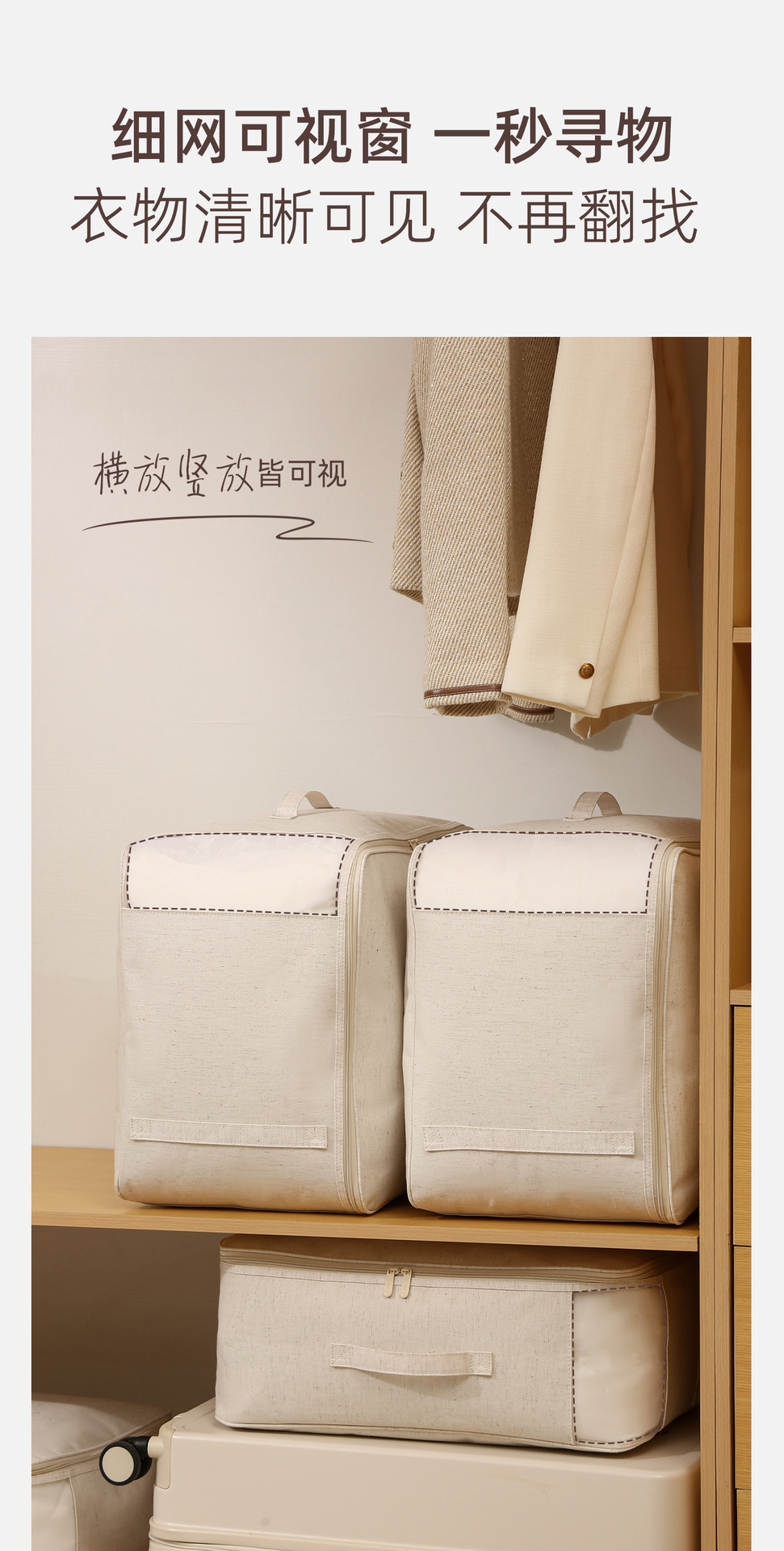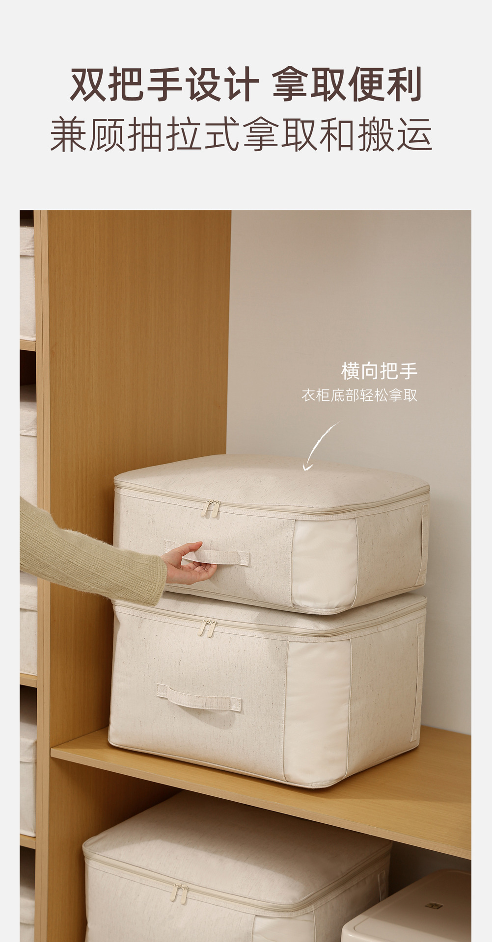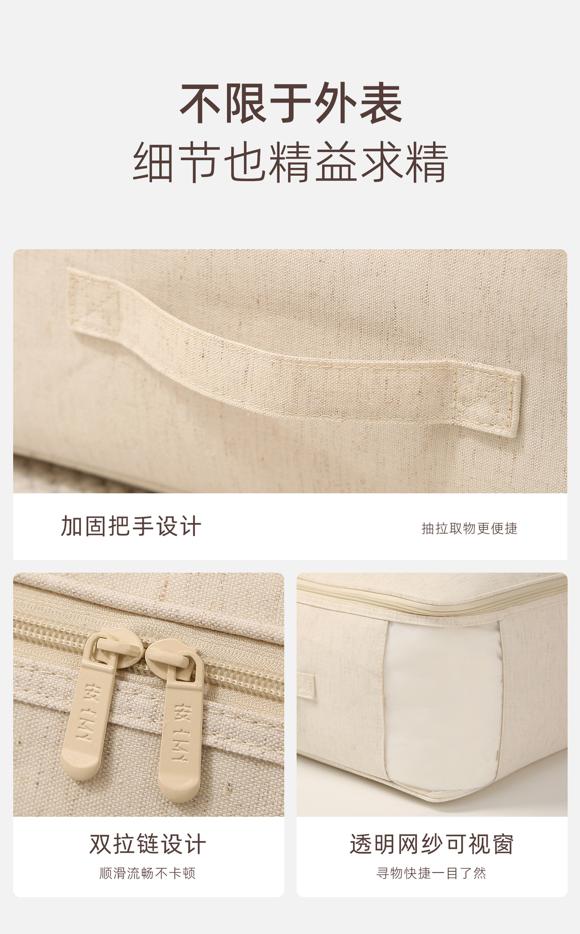 安琴天山棉麻棉被袋米色家用衣物羽绒服水洗可视大容量被子收纳袋