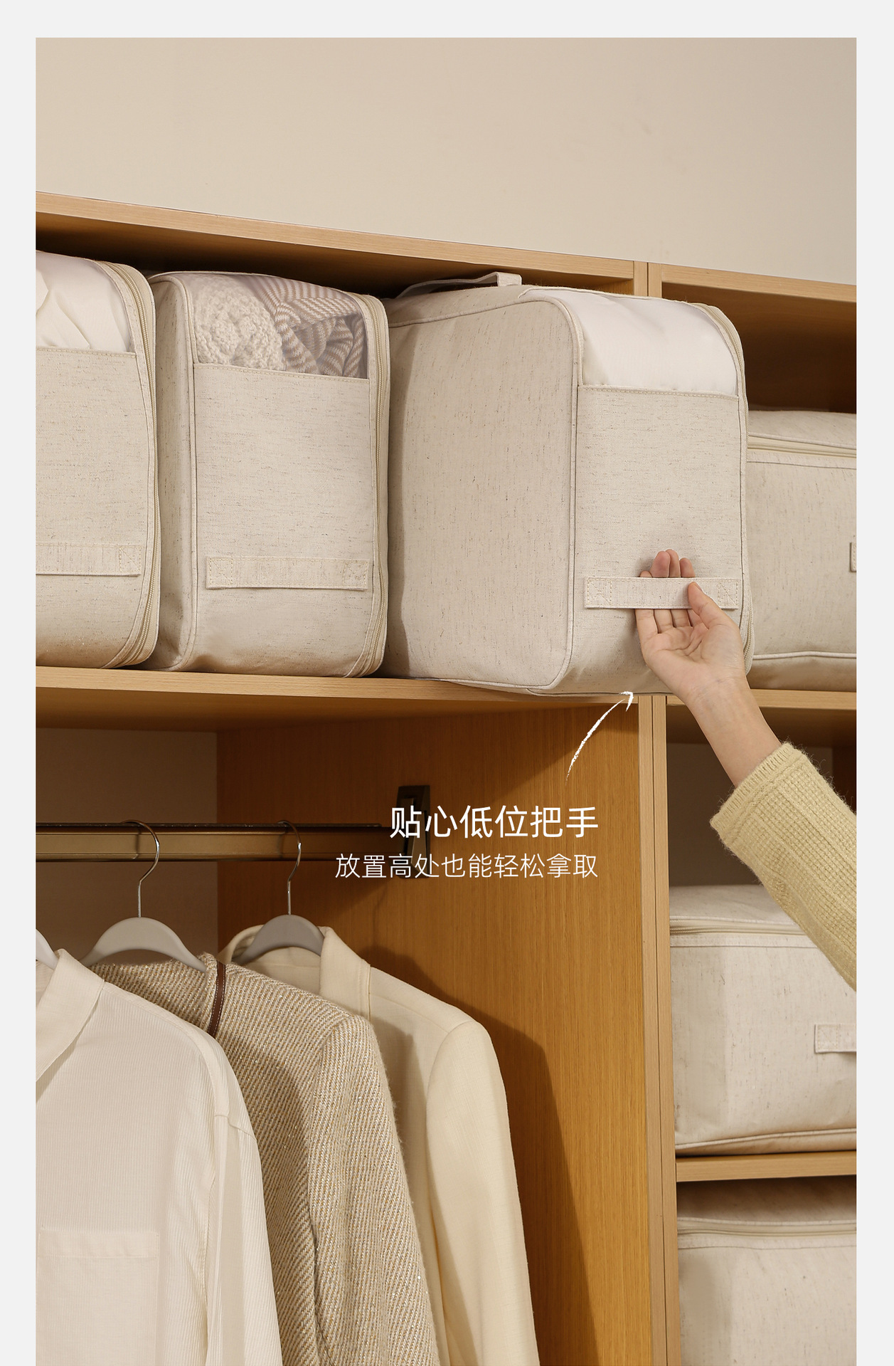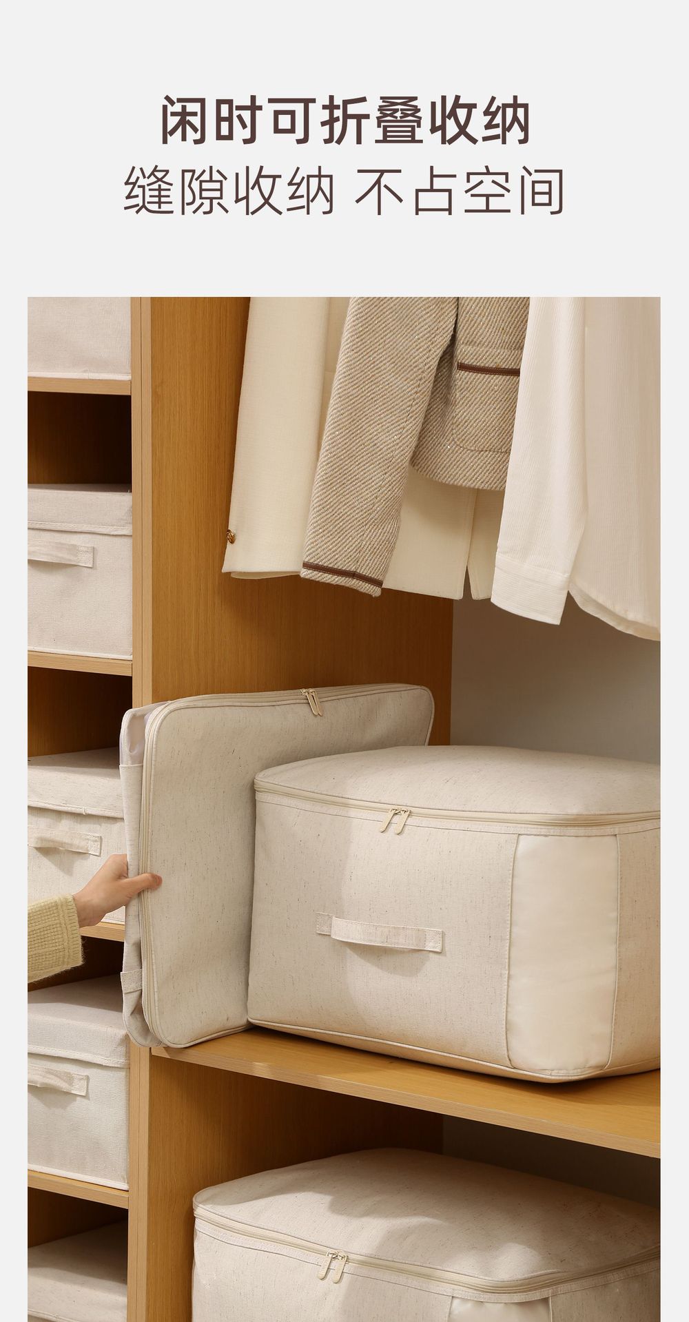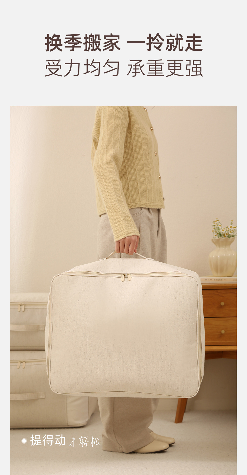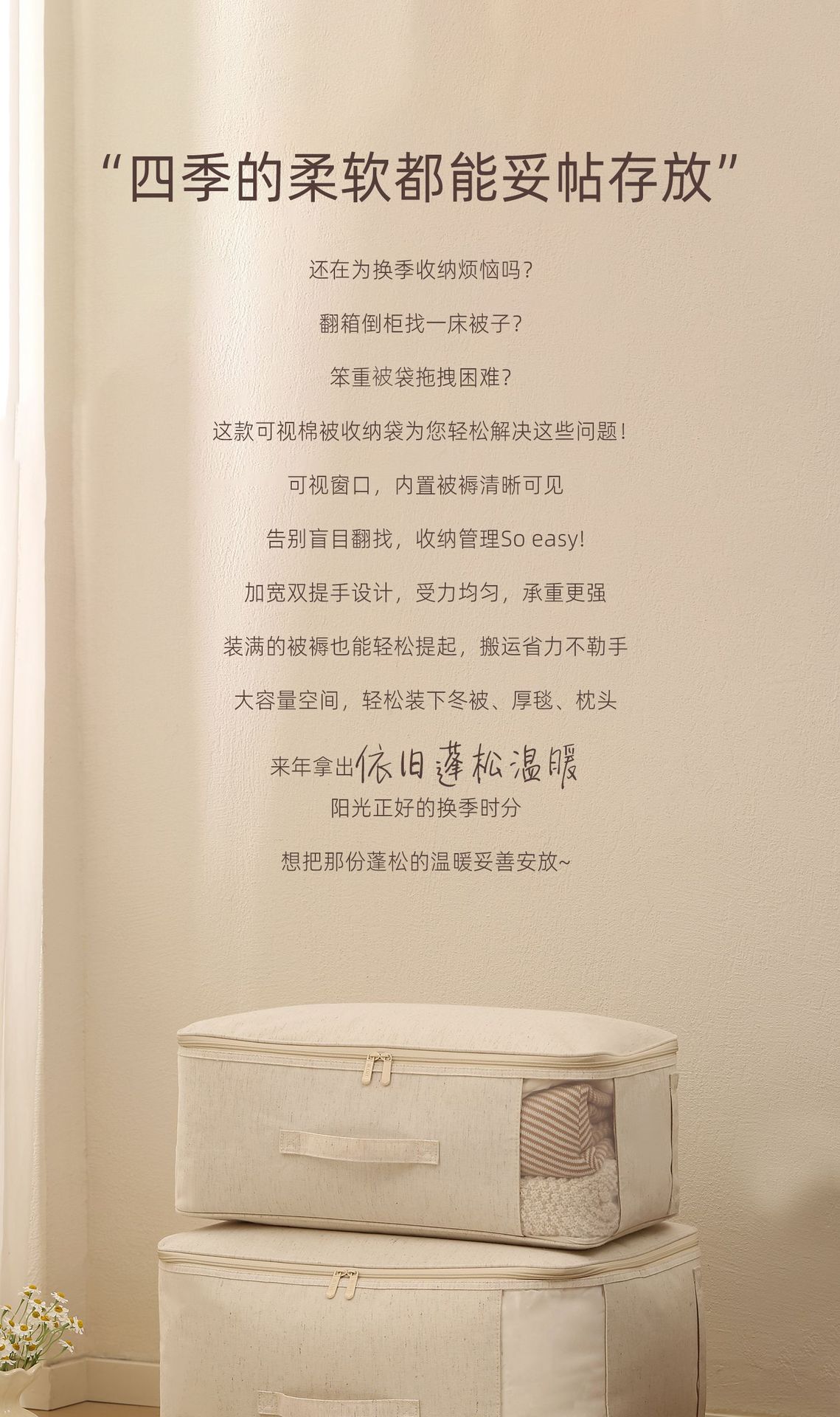 安琴天山棉麻棉被袋米色家用衣物羽绒服水洗可视大容量被子收纳袋
