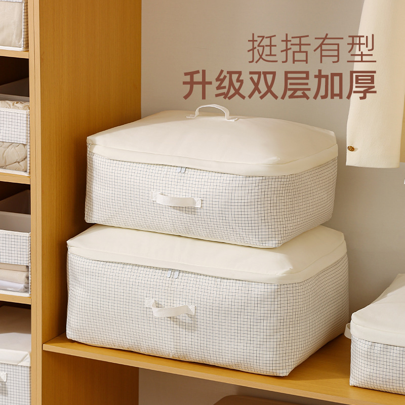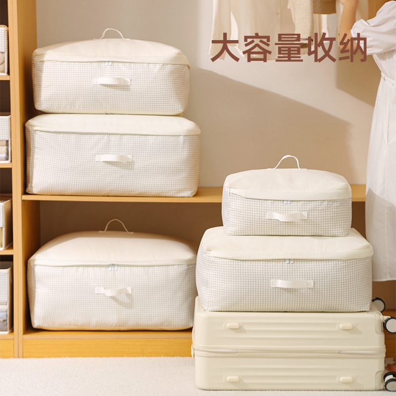 安琴被子收纳袋布艺双层大容量白色格子防潮可水洗被子打包收纳袋